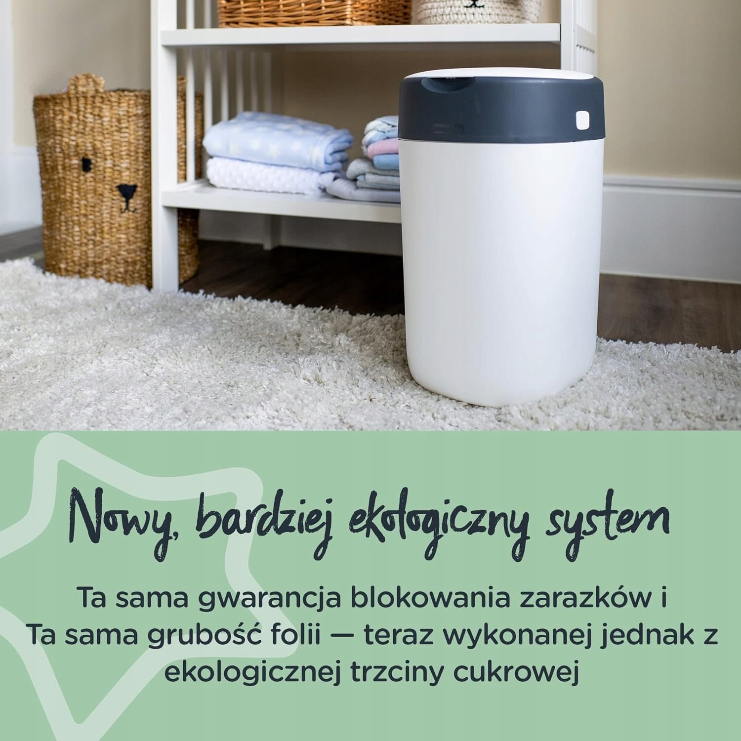 Тепер більш екологічно чисті: контейнери для підгузників Twist & Click і корпус вкладишів виготовлені на 98% із переробленого та повністю переробленого пластику та тепер містять антибактеріальну ЗЕЛЕНУ ПЛІВКУ з екологічно чистої цукрової тростини.