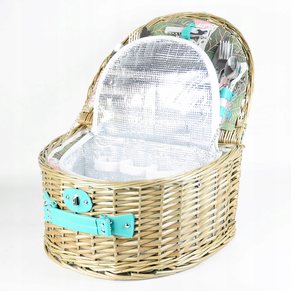 Елегантний плетений кошик з набором, набором столових приборів та термосумкою
