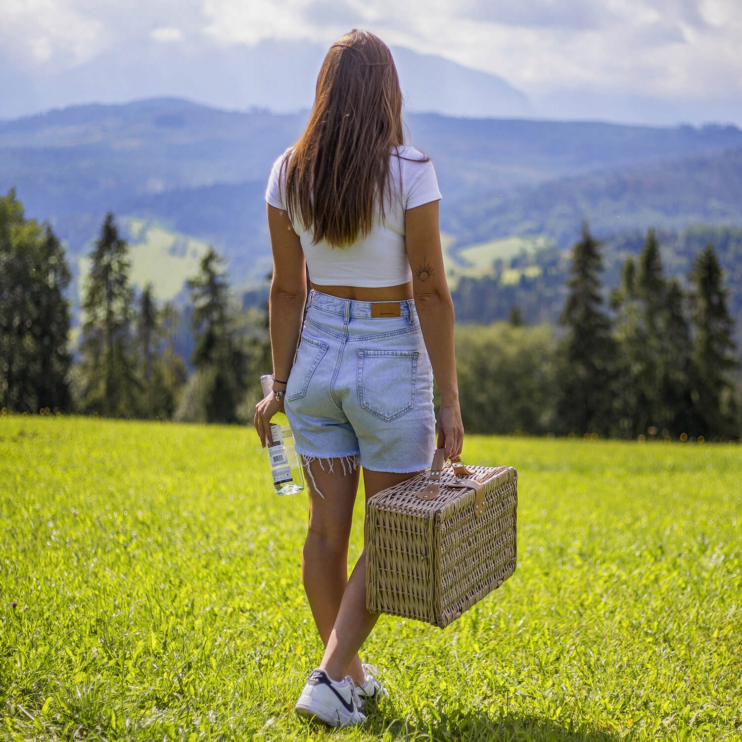Кошик для пікніка Плетений кошик + Термоторба, столові прибори, тарілки