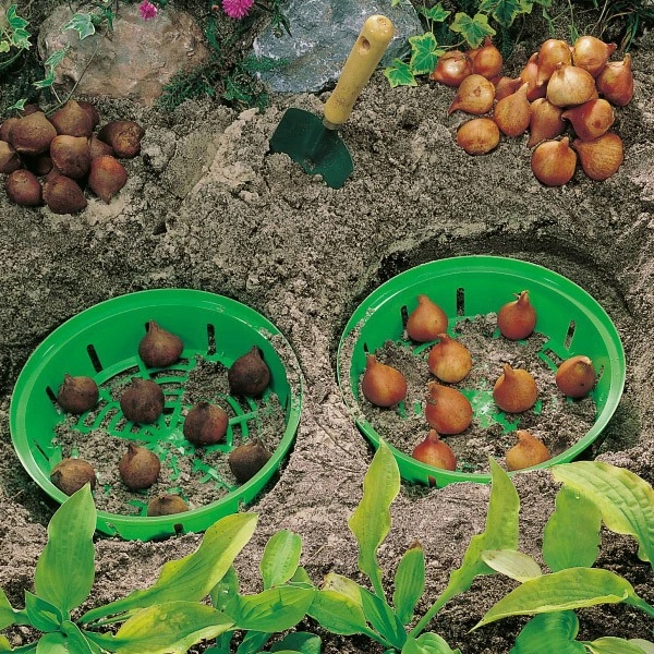 Вони захищають цибулини від садових шкідників, таких як як миші, кроти-полівки і водночас дозволяють легко розташувати посадки.