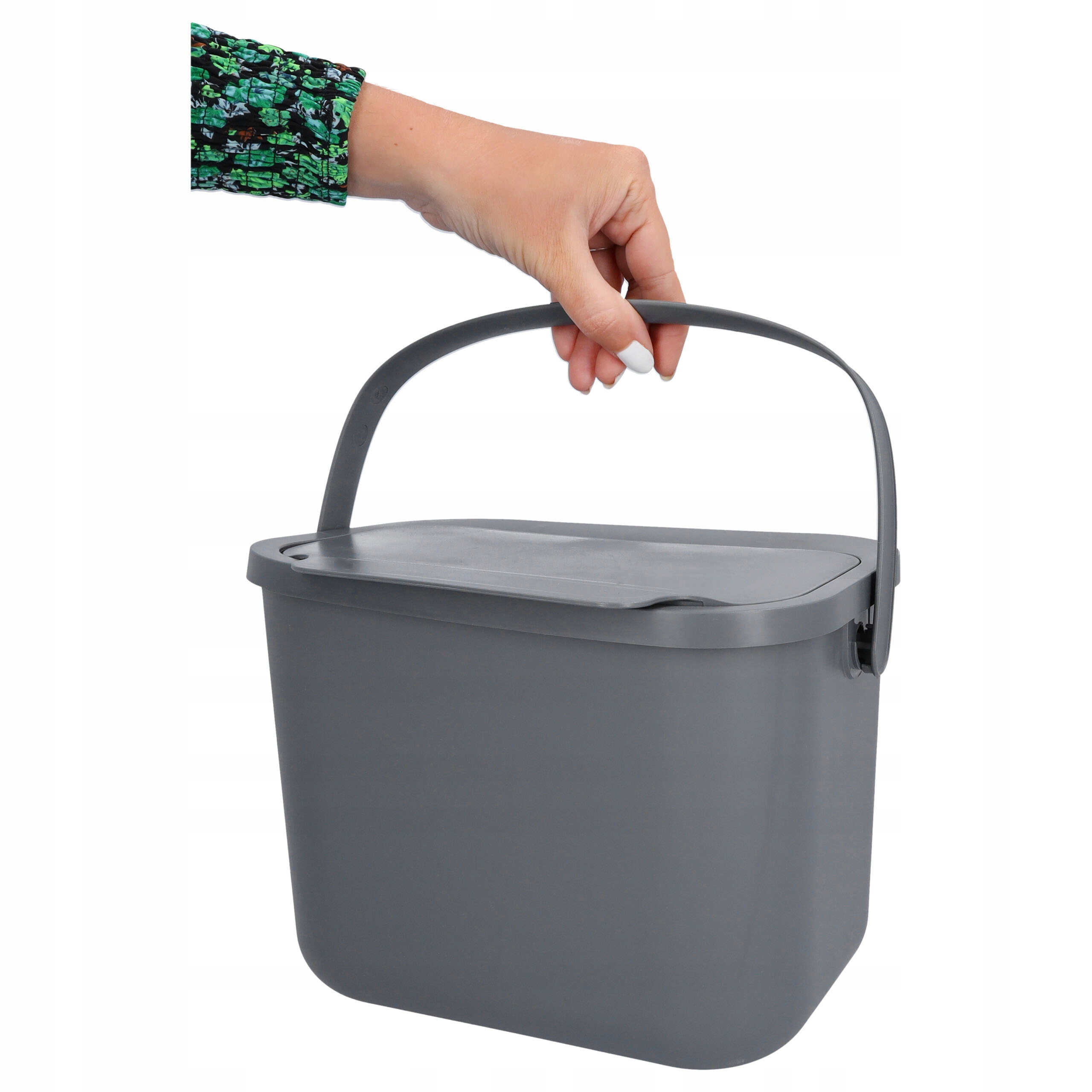 Представляємо наш 6-літровий контейнер Mini Bini сірого кольору - ідеальний для утилізації кухонних відходів і лушпиння. Це практичне та естетичне доповнення до будь-якої кухні, яке допомагає підтримувати її в чистоті та порядку. Його стрункий силует і зручний розмір дозволяють зручно розмістити його на кухонному столі, а польське виробництво гарантує високу якість.