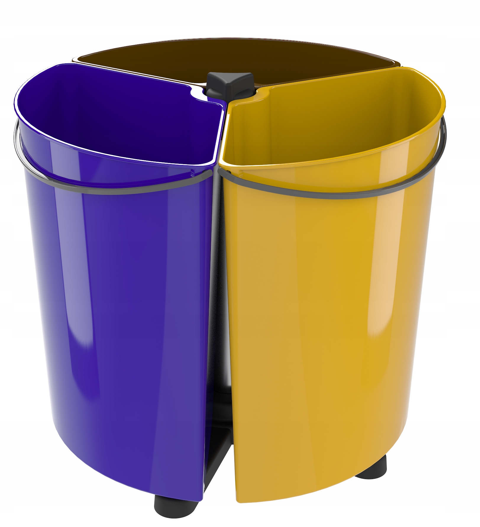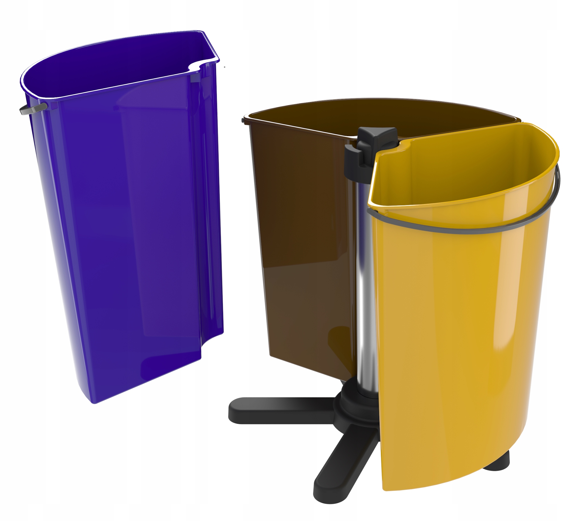 Контейнер складається з трьох різнокольорових контейнерів, які використовуються для збору таких видів сміття: