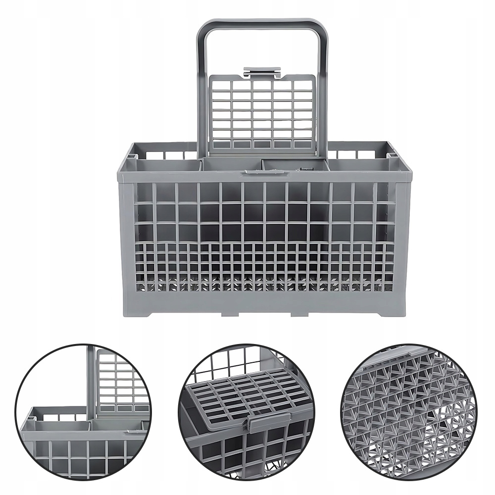 Кошик для столових приборів для посудомийної машини має вбудовані кілька відділень, що зручно для розміщення різного посуду. Кошик для посудомийної машини має 7 відділень, 1 ручку та 1 маленьку кришку, яка вміщує лише одне відділення.