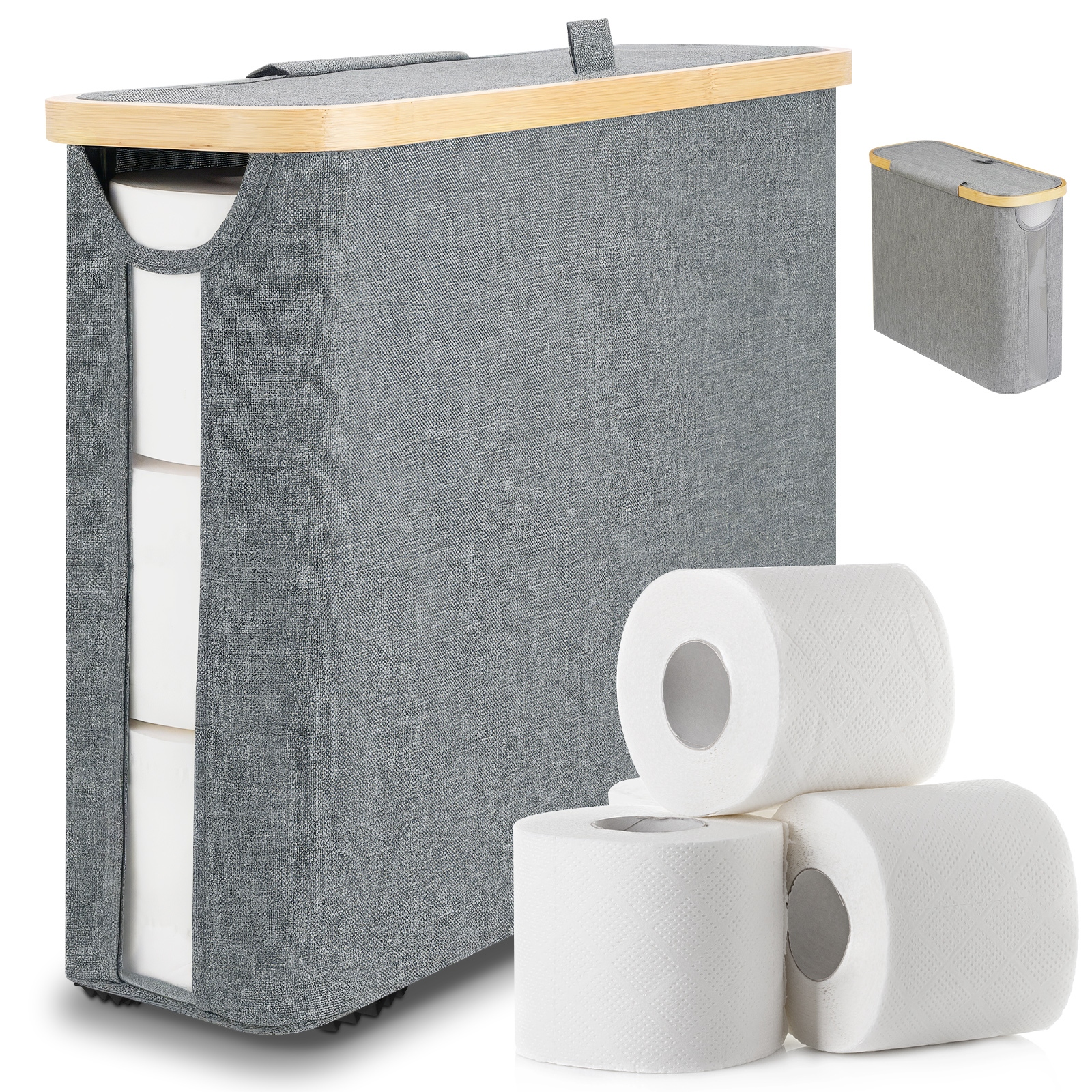 Кошик для туалетного паперу з здатною кришкою для 12 складного бамбука
