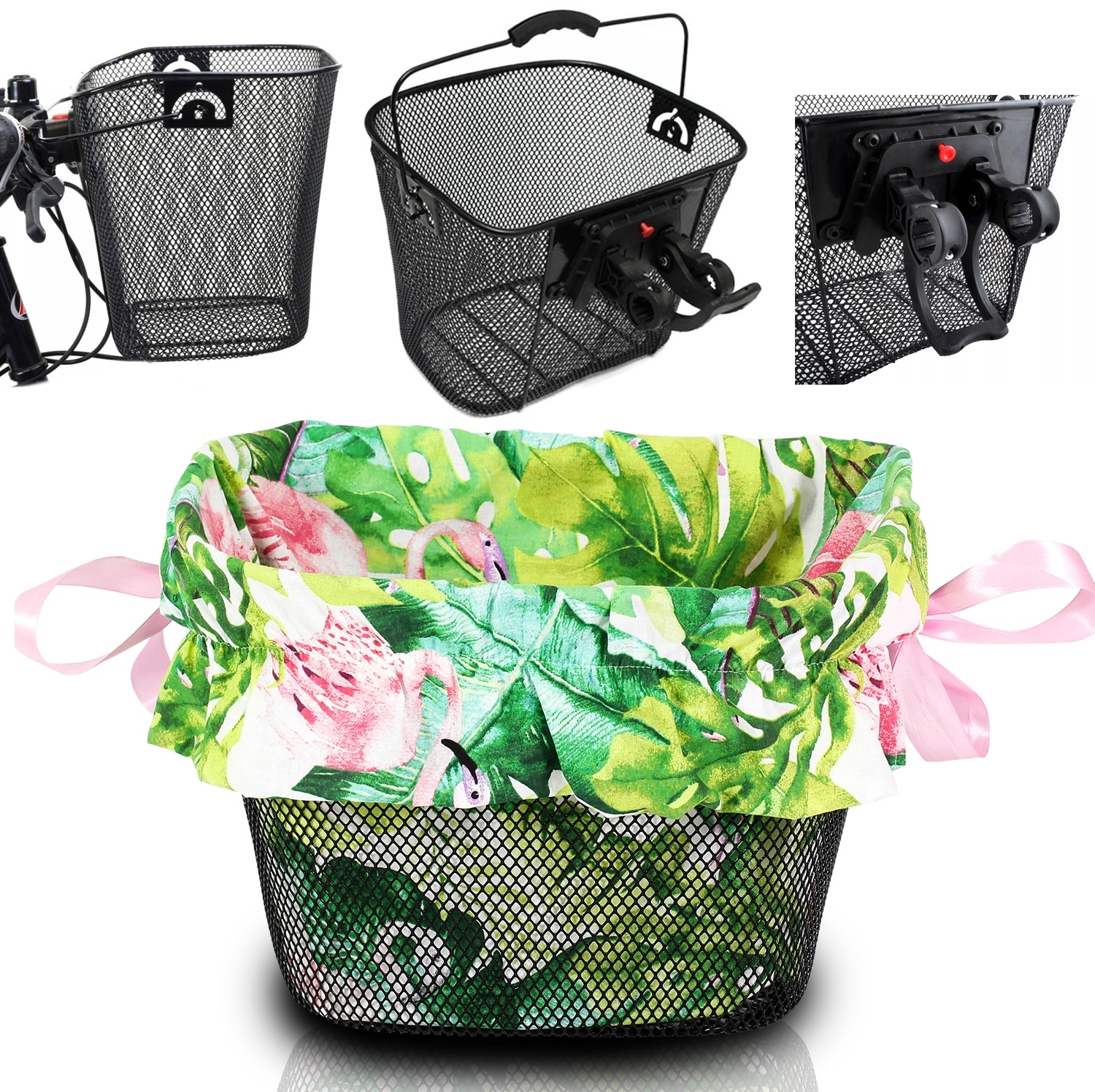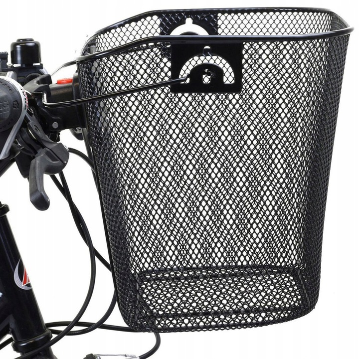 - Кошик для велосипеда з чорної металевої сітки. Кошик кріпиться до керма за допомогою кронштейна типу "CLICK".