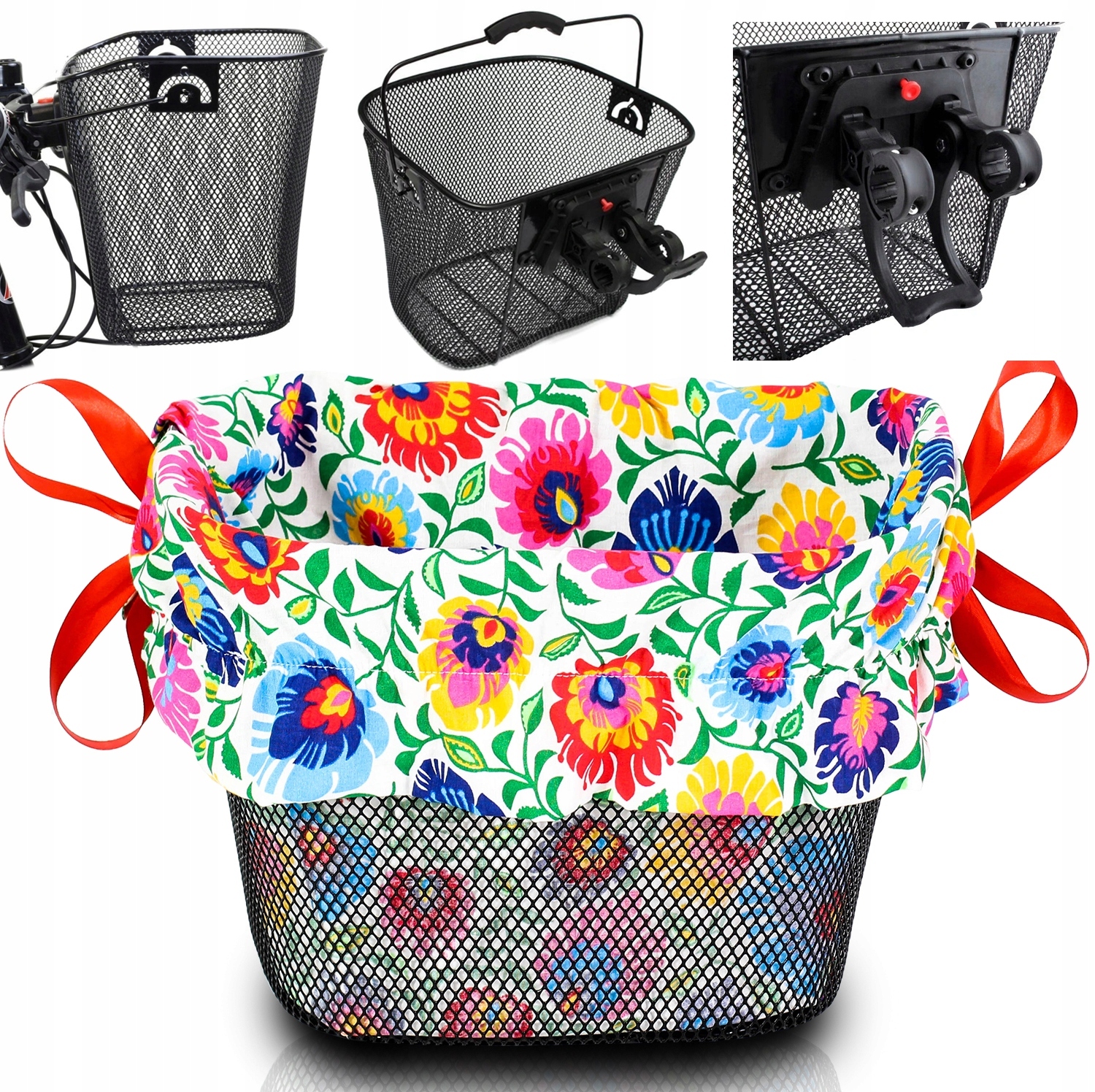 - Кошик для велосипеда з чорної металевої сітки. Кошик кріпиться до керма за допомогою кронштейна типу "CLICK".