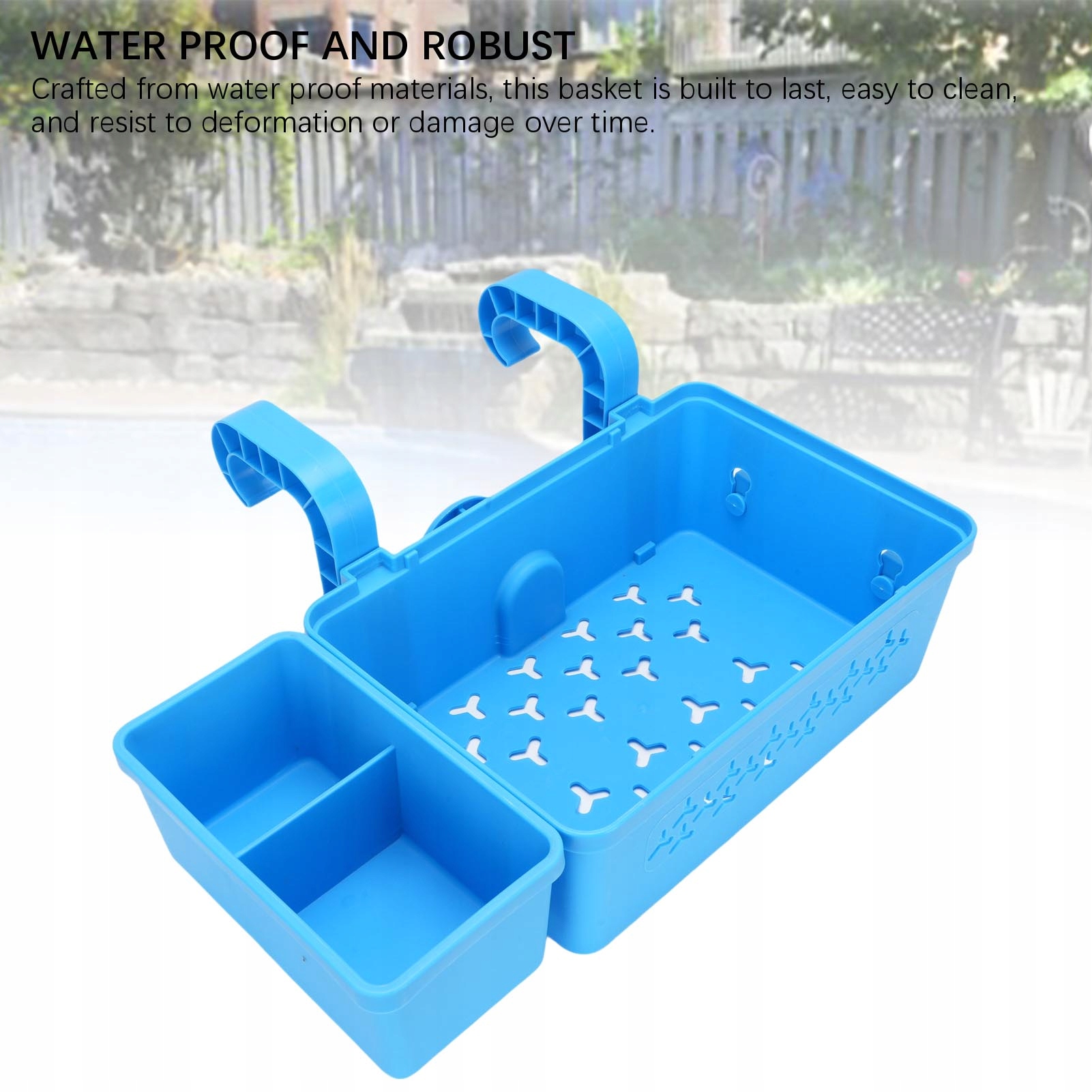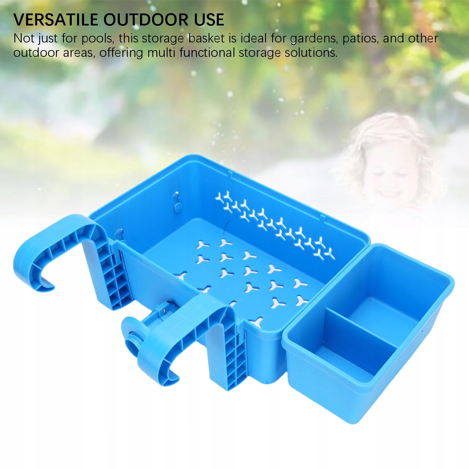 4. Універсальне використання на відкритому повітрі: цей кошик ідеально підходить не лише для басейнів, а й для садів, патіо та інших відкритих майданчиків, пропонуючи багато функціональних рішень для зберігання.
