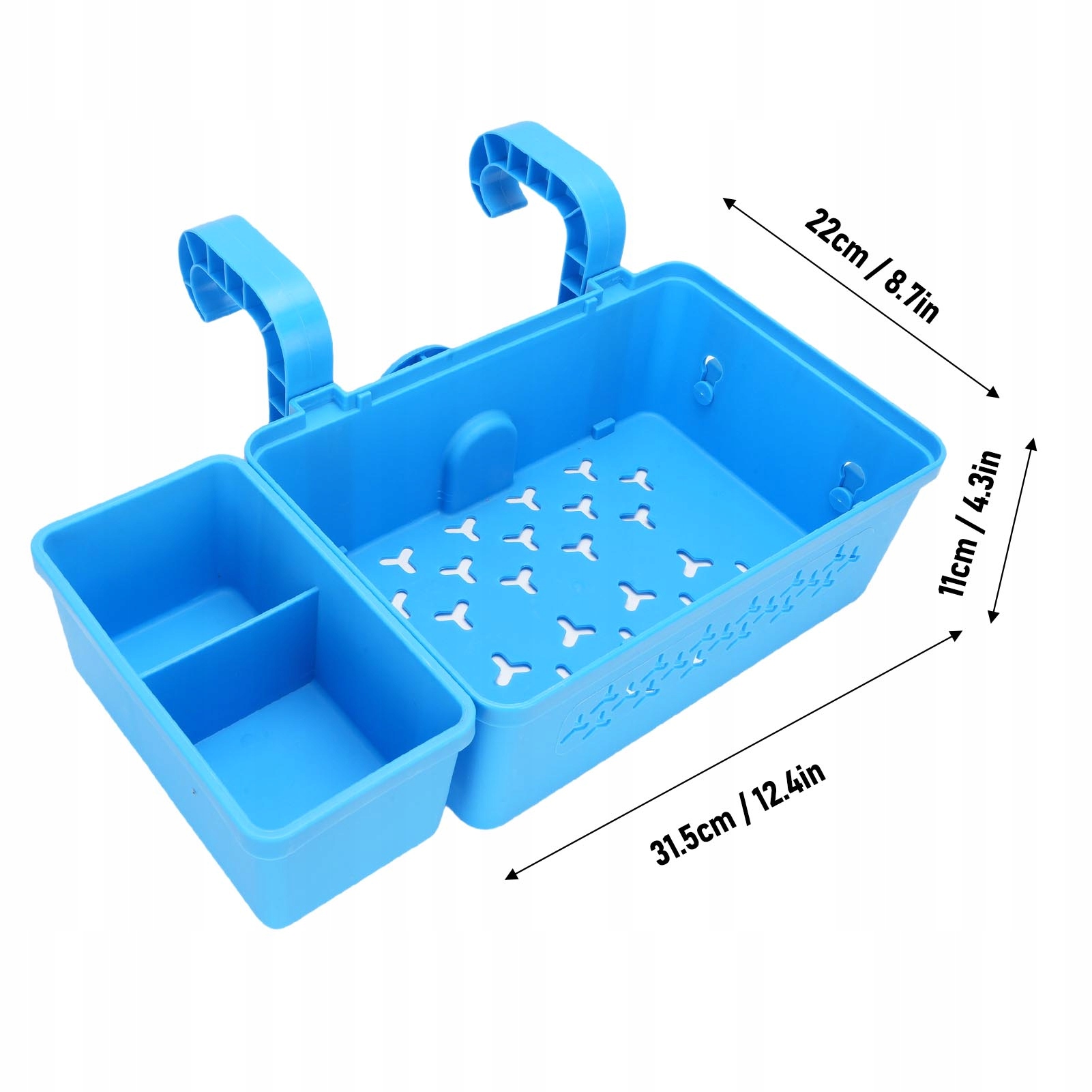 3. Зручний підвісний дизайн: легко вішається на поручні або стіни біля басейну, заощаджуючи простір і забезпечуючи швидкий і легкий доступ до необхідних речей для басейну.