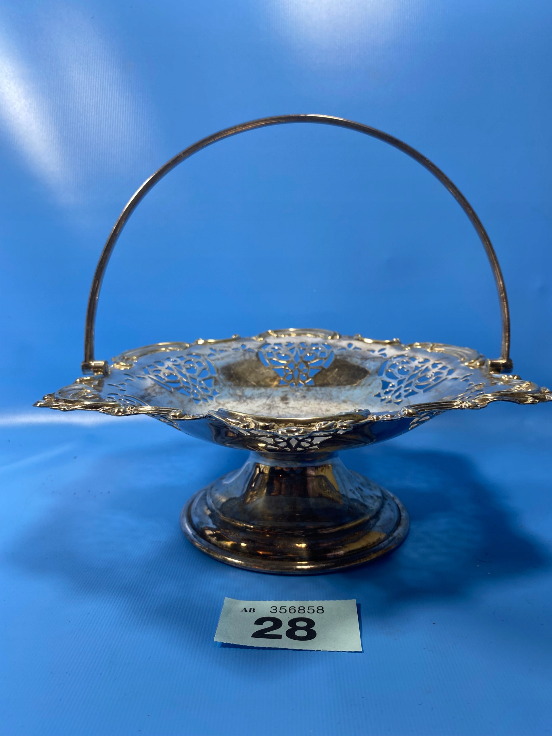 КОШИК ФРУКТІВ З АНГЛІЙСЬКИМ ВИЗЕРУНКОМ. ПОСРІБЛЕНИЙ АНТИКВ