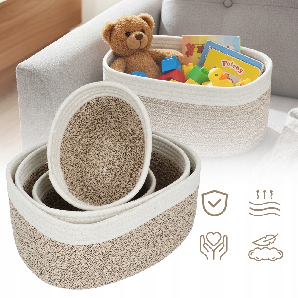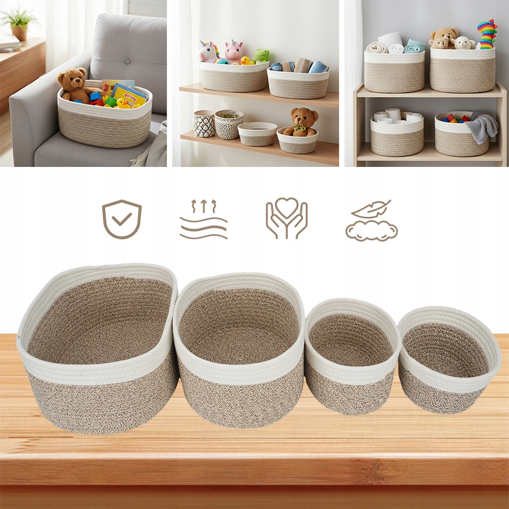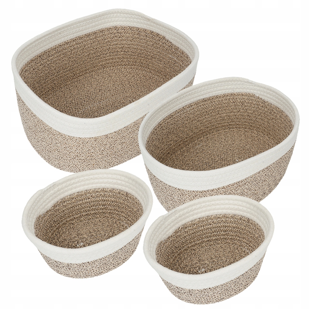 КОШИК НАБІР 4 ПРЕДМЕТИ БАВОВНА ОРГАНІЗАТОР ДЛЯ ЗБЕРІГАННЯ ПЛЕТЕНИЙ КОШИК