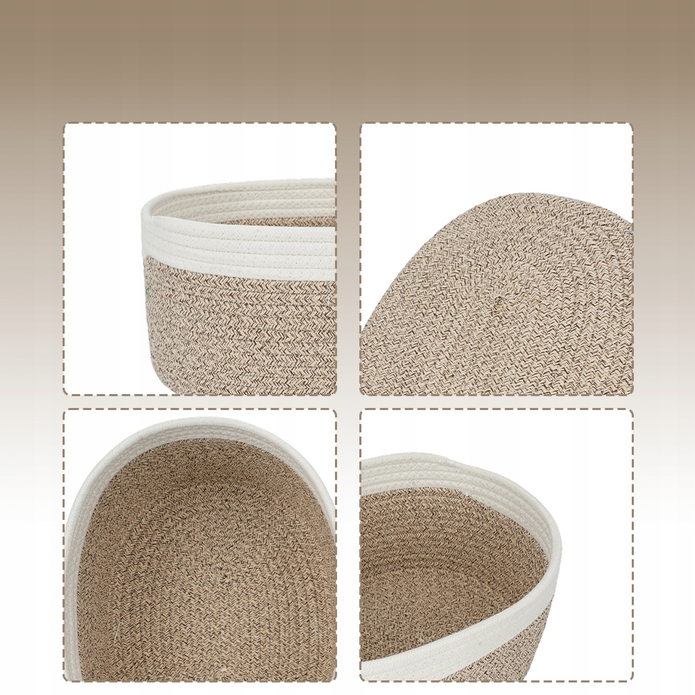Виготовлений вручну з бавовни найвищої якості, без хімічного пластику, екологічно чистий і без запаху, це безпечне та приємне для шкіри рішення для зберігання. Цей плетений кошик - чудовий вибір для дому та дитячої кімнати. Високоеластична бавовняна мотузка забезпечує достатню міцність, дозволяючи згортатися за необхідності без деформації.