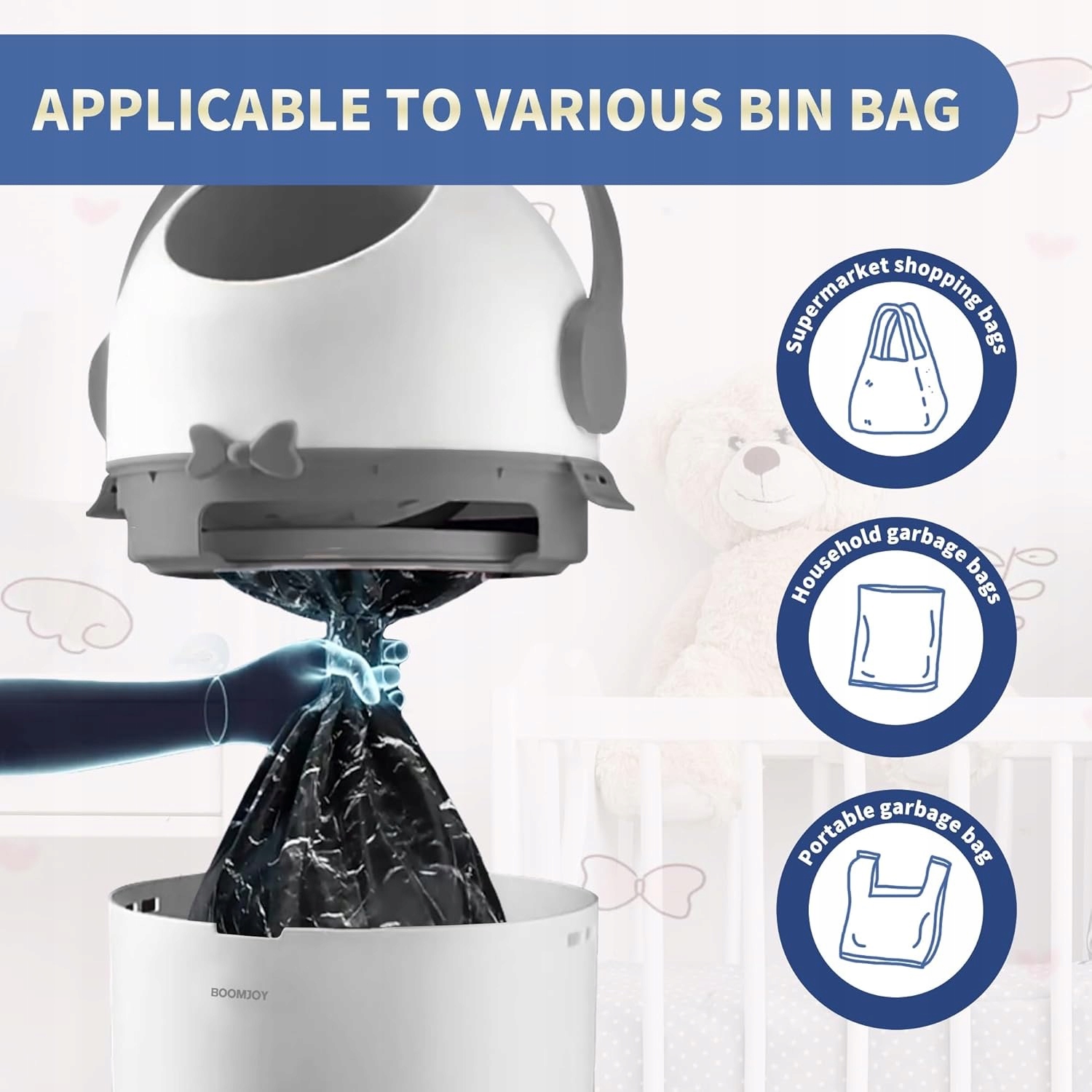Кошик підгузників Boomjoy для немовлят, пластик, без запаху, без додаткових витрат, звичайні мішки, білі