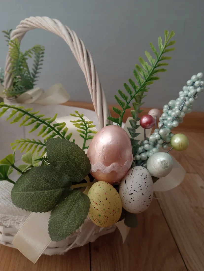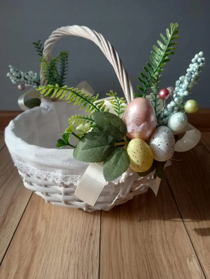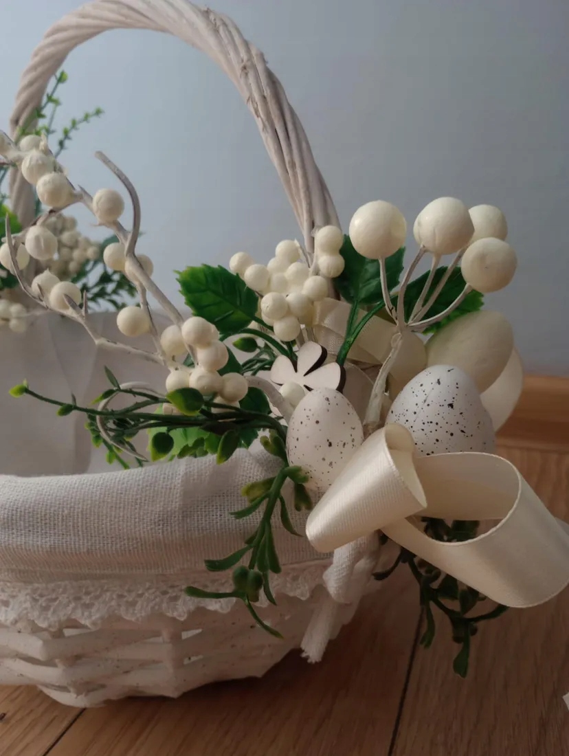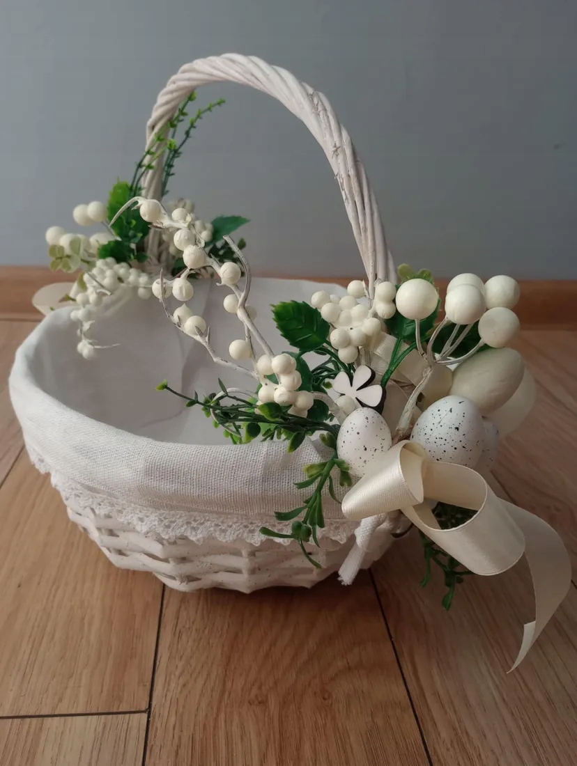Декоративний, прикрашений плетений кошик — класичний вибір на Великдень, який буде працювати і як свічка, і як елемент декору. Завдяки білому покриттю ідеально вписується в різні стилі інтер'єру.