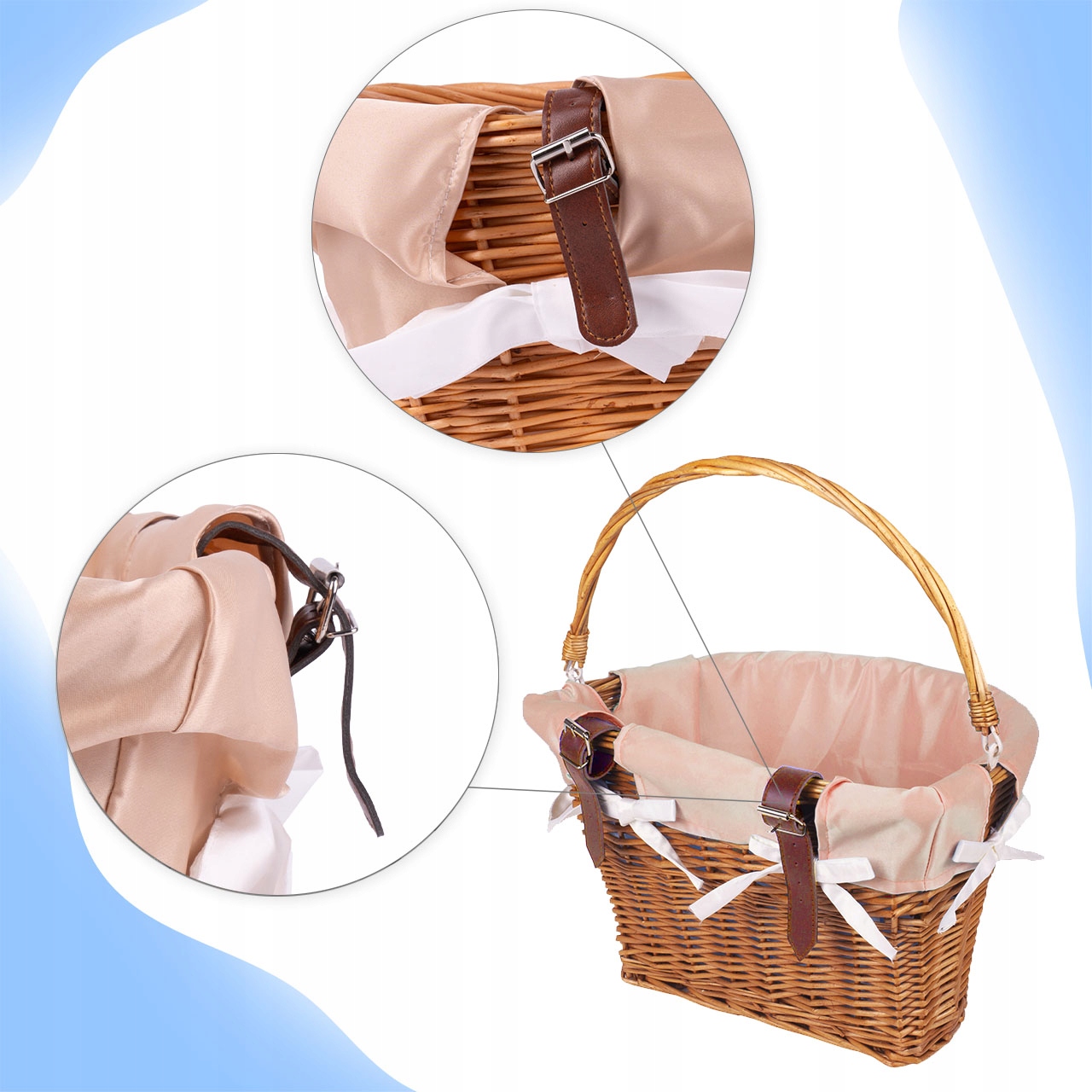 KOSZYK WIKLINOWY ROWEROWY Z BEŻOWYM WKŁADEM POJEMNY Z UCHWYTEM MOCOWANIEM