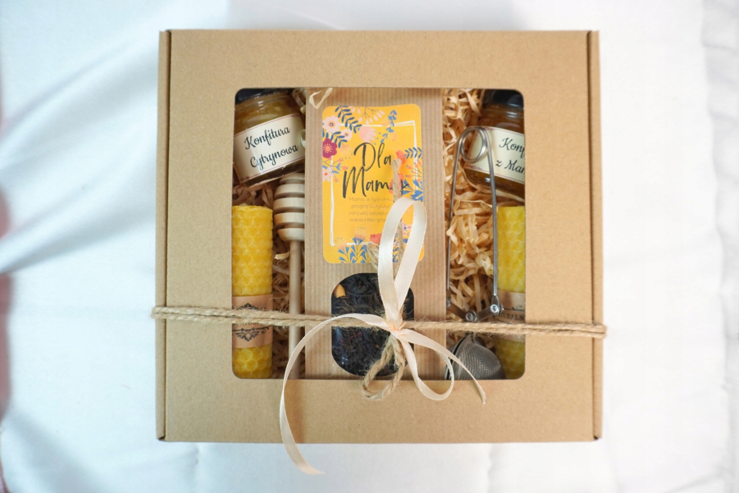 Кошик подарунковий до Дня Матері з чаєм, варенням, свічкою, подарунковий набір