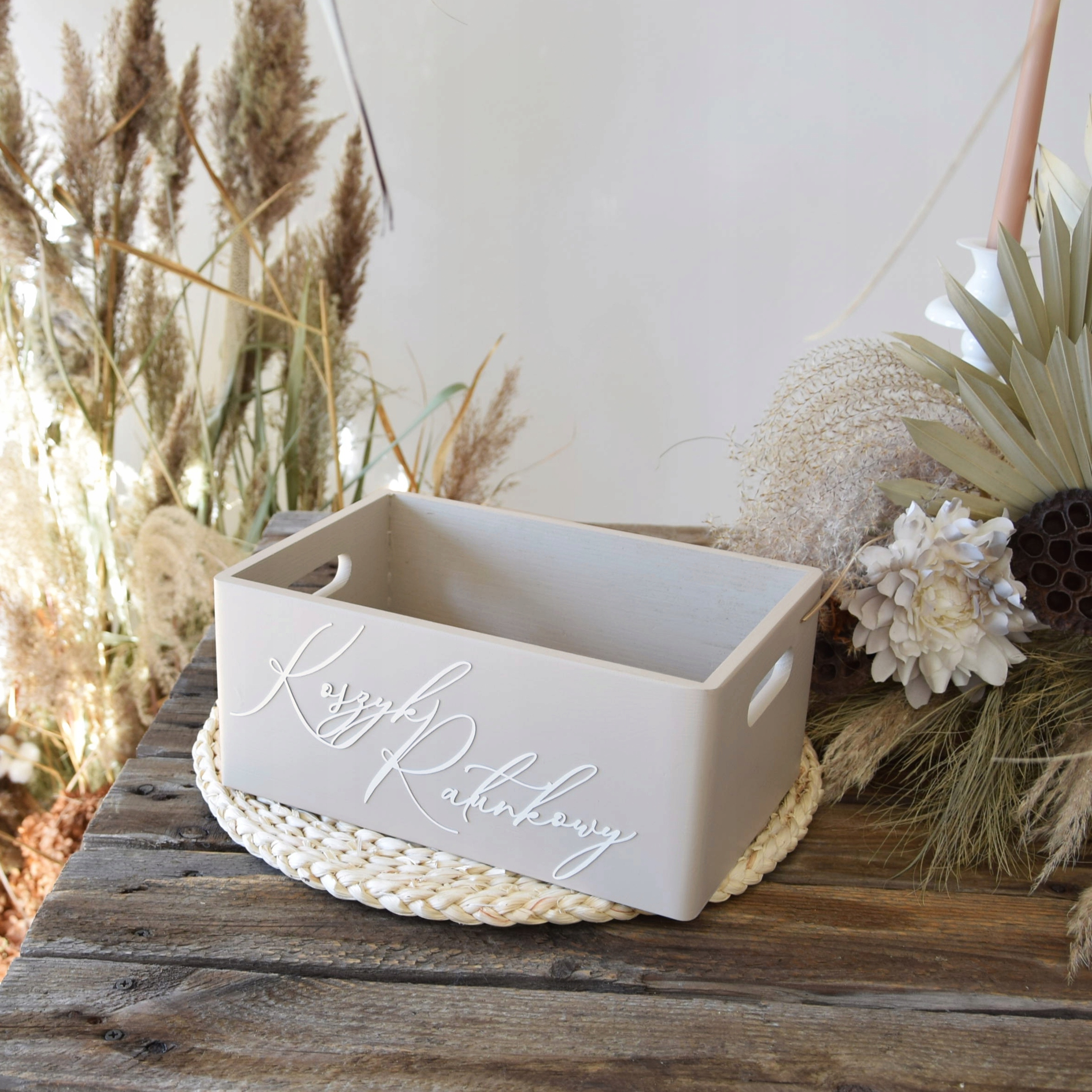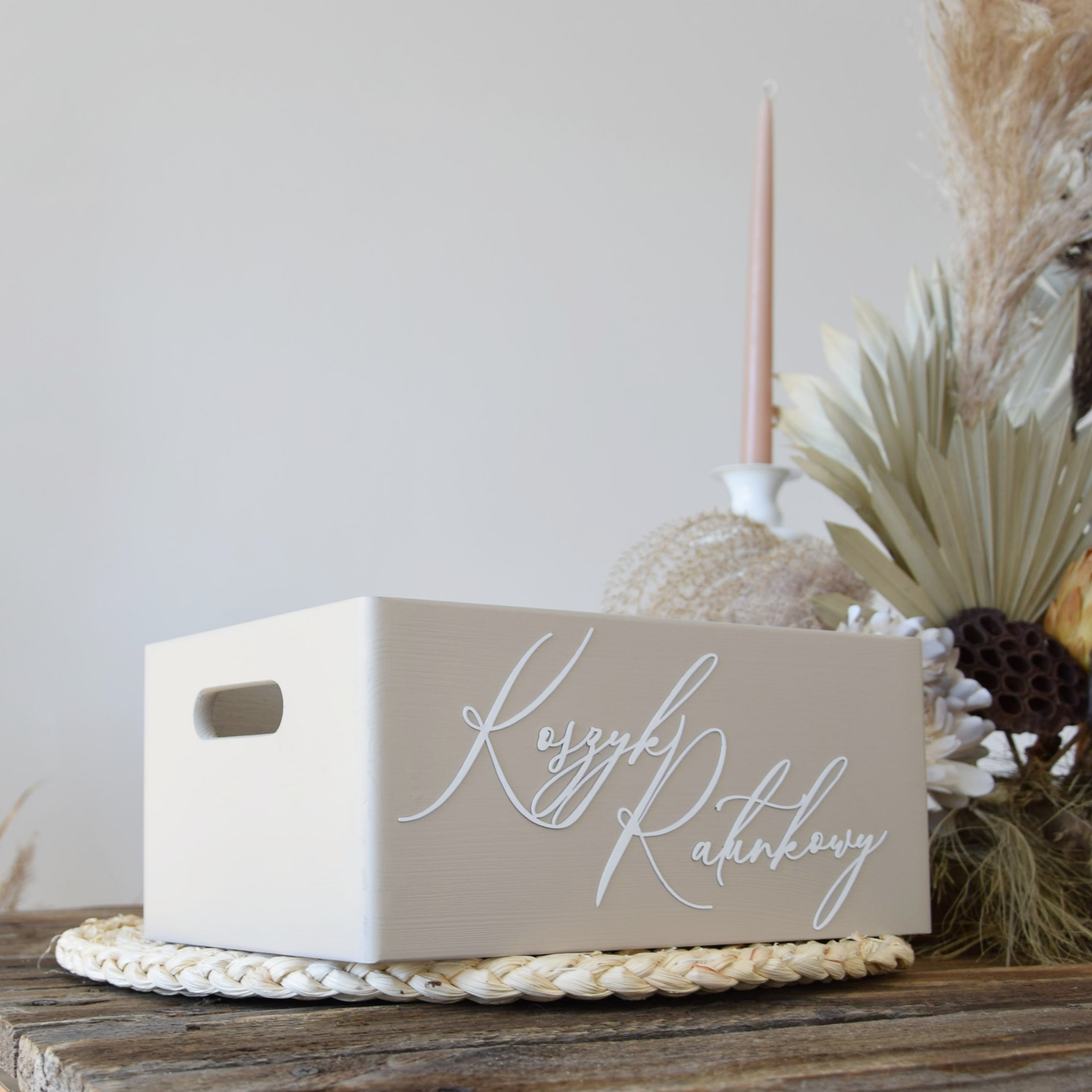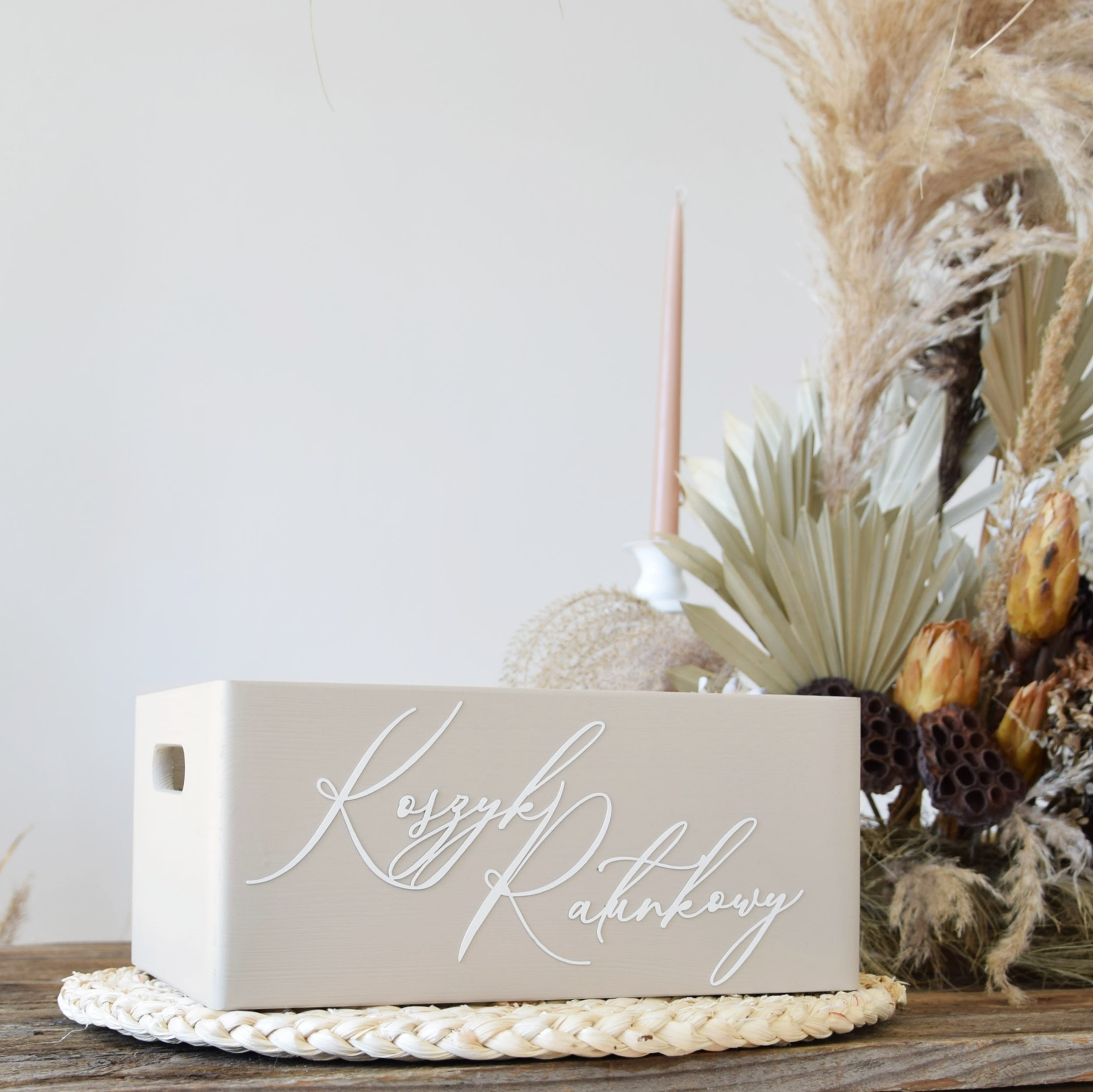 - 1 x бежевий дерев'яний кошик