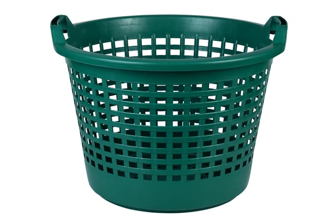 Кошик ажурний із пластику, оснащений двома ручками. Колір кошика зелений. Легкий і зручний. Ідеально підходить для збирання овочів, фруктів і листя.
