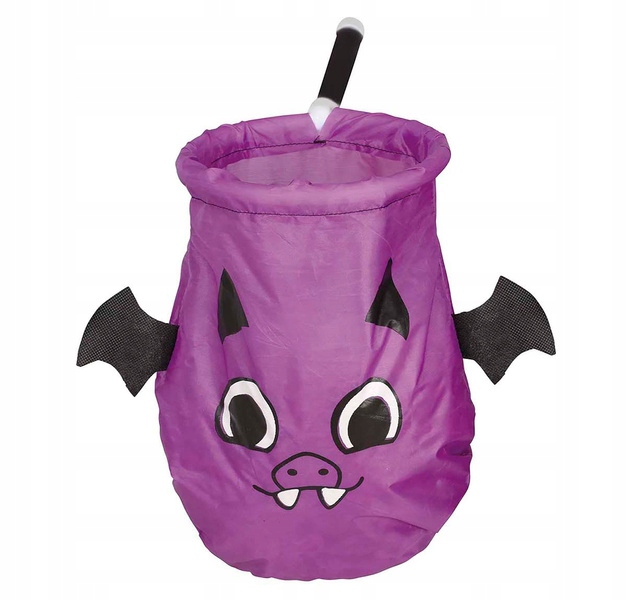 Чарівний кошик у формі фіолетового кажана - чудове доповнення до колекції цукерок на Хелловін! Оснащений зручною палицею, він дозволяє легко переносити та подавати зібрані солодощі. Ідеально підходить як для дітей, так і для дорослих, які хочуть додати своєму костюму унікальний персонаж.