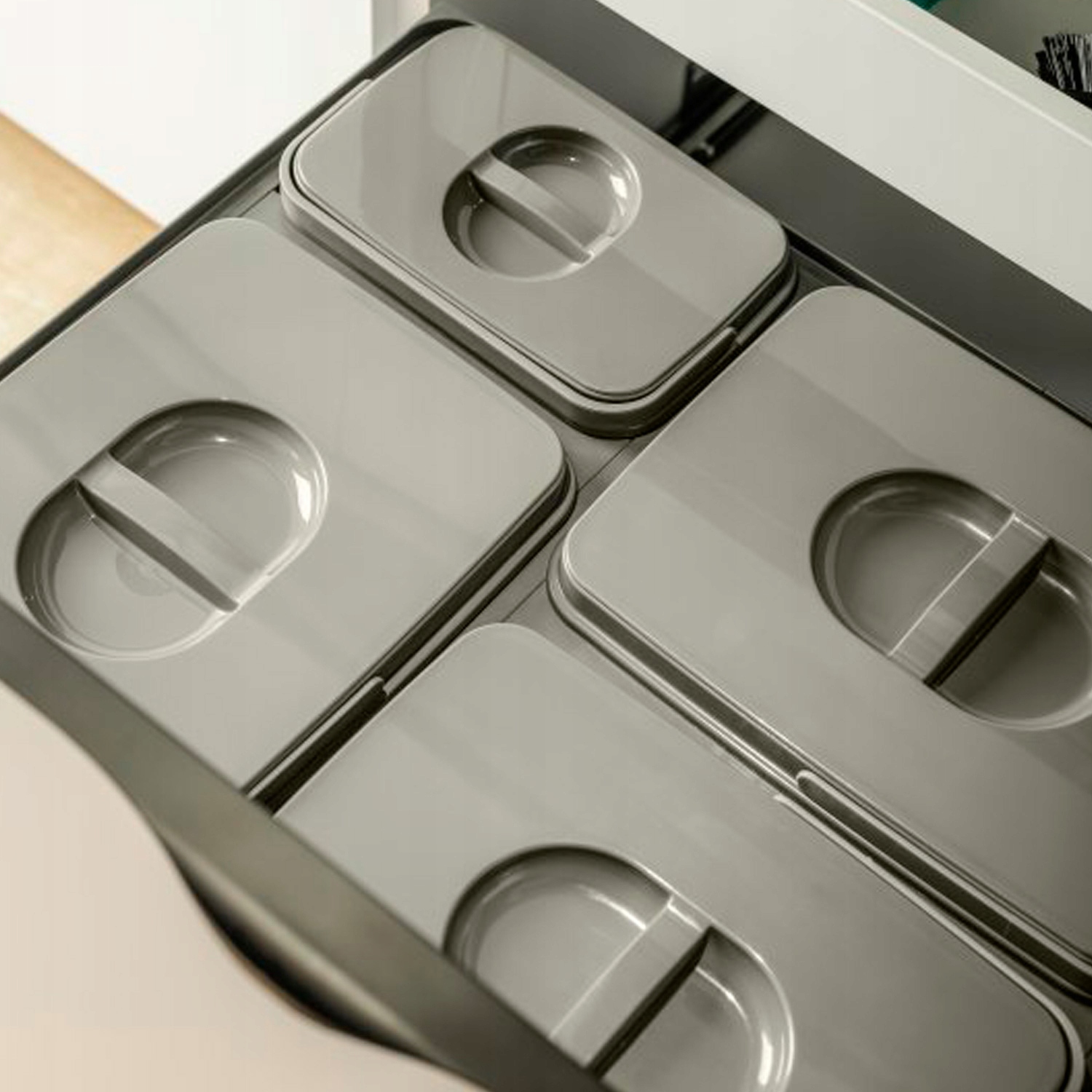 Багатокольорний в'яжучий 3x15L + 1x7L - це чудове рішення, яке дозволяє сортувати відходи простим і приємним способом . Завдяки чотирма контейнерам дуже просто відокремити різні типи сміття, що полегшує сегрегацію.