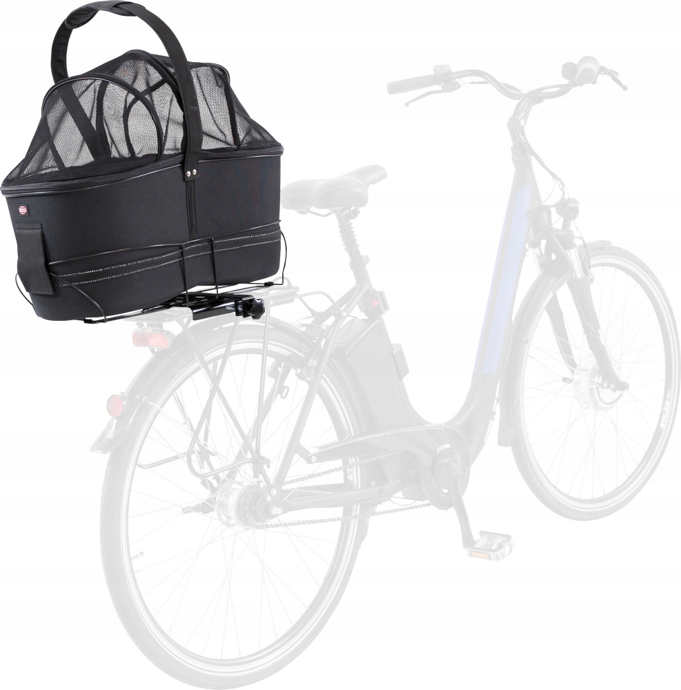 Кошик для велосипеда виготовлено з міцного матеріалу EVA та поліестеру. Встановлюється на металеву раму для безпечного транспортування собаки на велосипедній стійці. Завдяки липучці кошик можна зняти з рами та використовувати як сумку для транспортування. Зверху кошик кріпиться жорсткою тканинною сіткою на блискавці, яка захищає вихованця від випадання або вистрибуванняі забезпечує хорошу циркуляцію повітря. Всередині є короткий поводок з металевим карабіном для кріплення вашого вихованця для безпечного транспортування під час велопрогулянки. З боків кошика вшита світловідбиваюча нитка, яка забезпечує безпечну їзду в темний час доби.