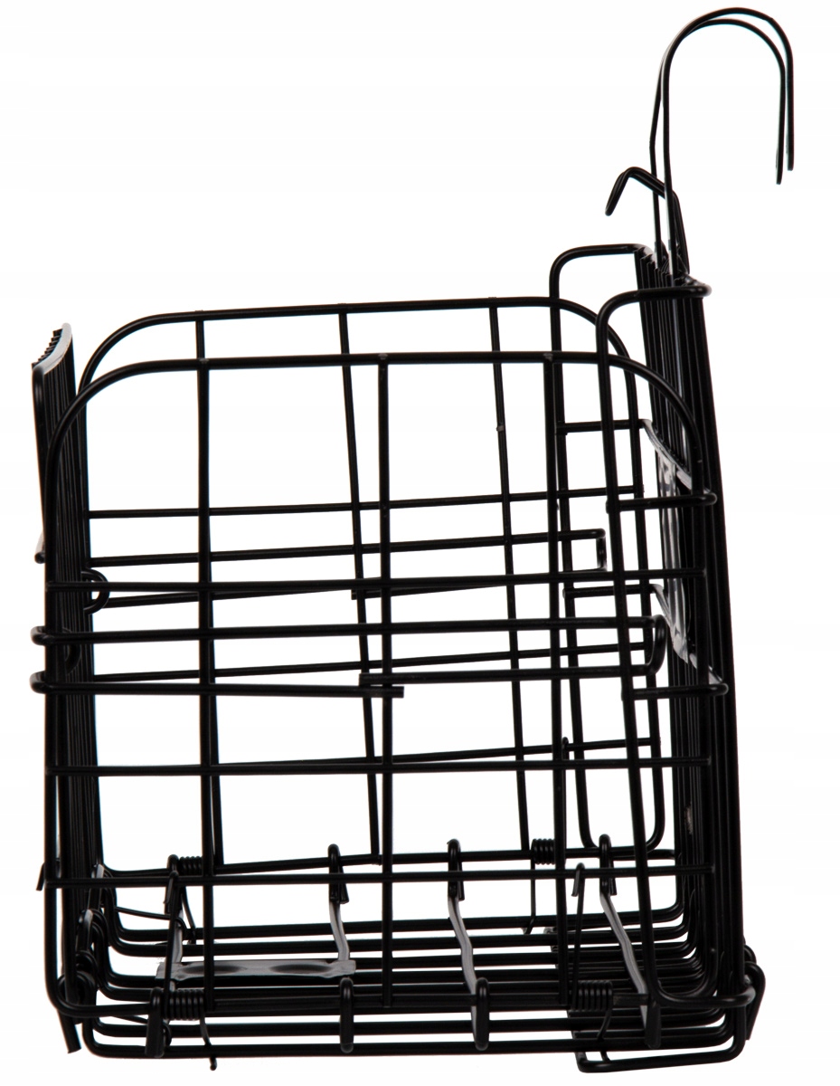 Кошик металевий, покритий чорною фарбою. Завдяки пружинам його дуже легко збирати і розбирати. Просто відпустіть замок, і кошик відкриється автоматично. У складеному вигляді кошик займе зовсім небагато місця і його легко зберігати.