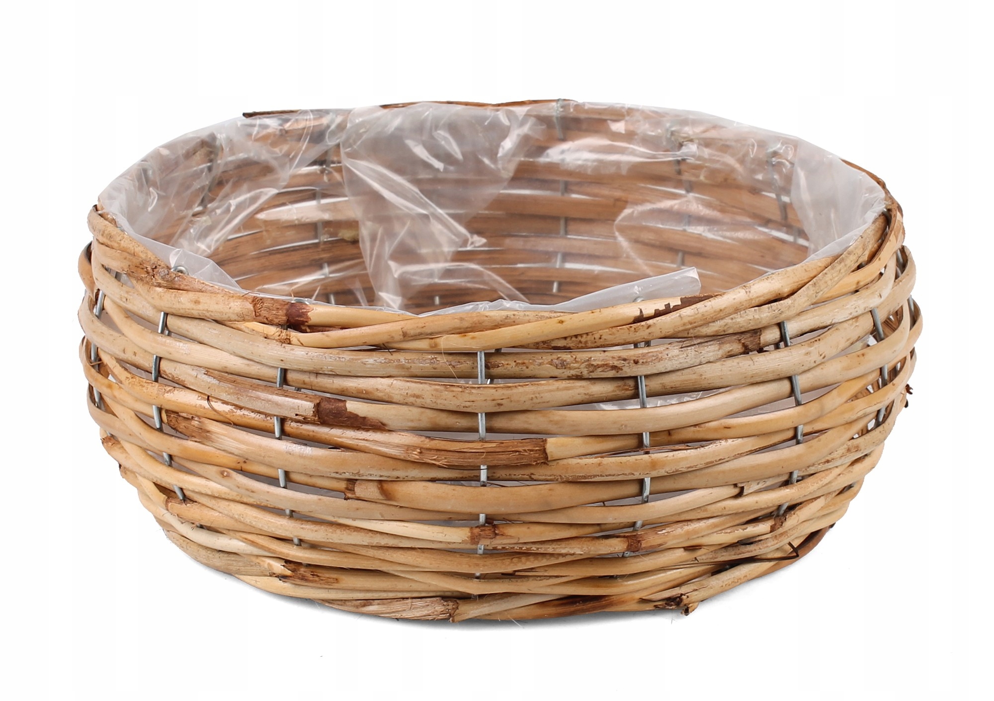 КОШИК КРУГЛИЙ З РОТАНГА З ПЛІВКОЮ ДЛЯ КВІТІВ 28x28x11h см