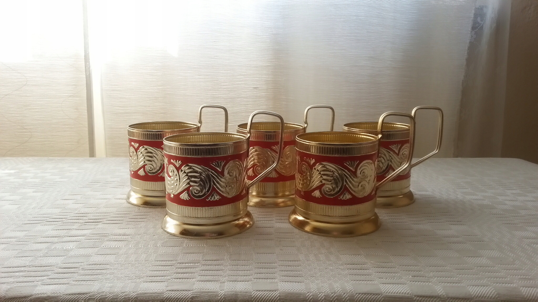 Тема продажу - це набір з 5 кошиків, скляні ручки. Висота непомітно 7,5 см, з вухом 9,8 см, діаметр на склянку 6,7 см. Кошики в приємному стані, з приємним блиском. Вироблений у 1980 -х роках у CCCP. Підписаний.