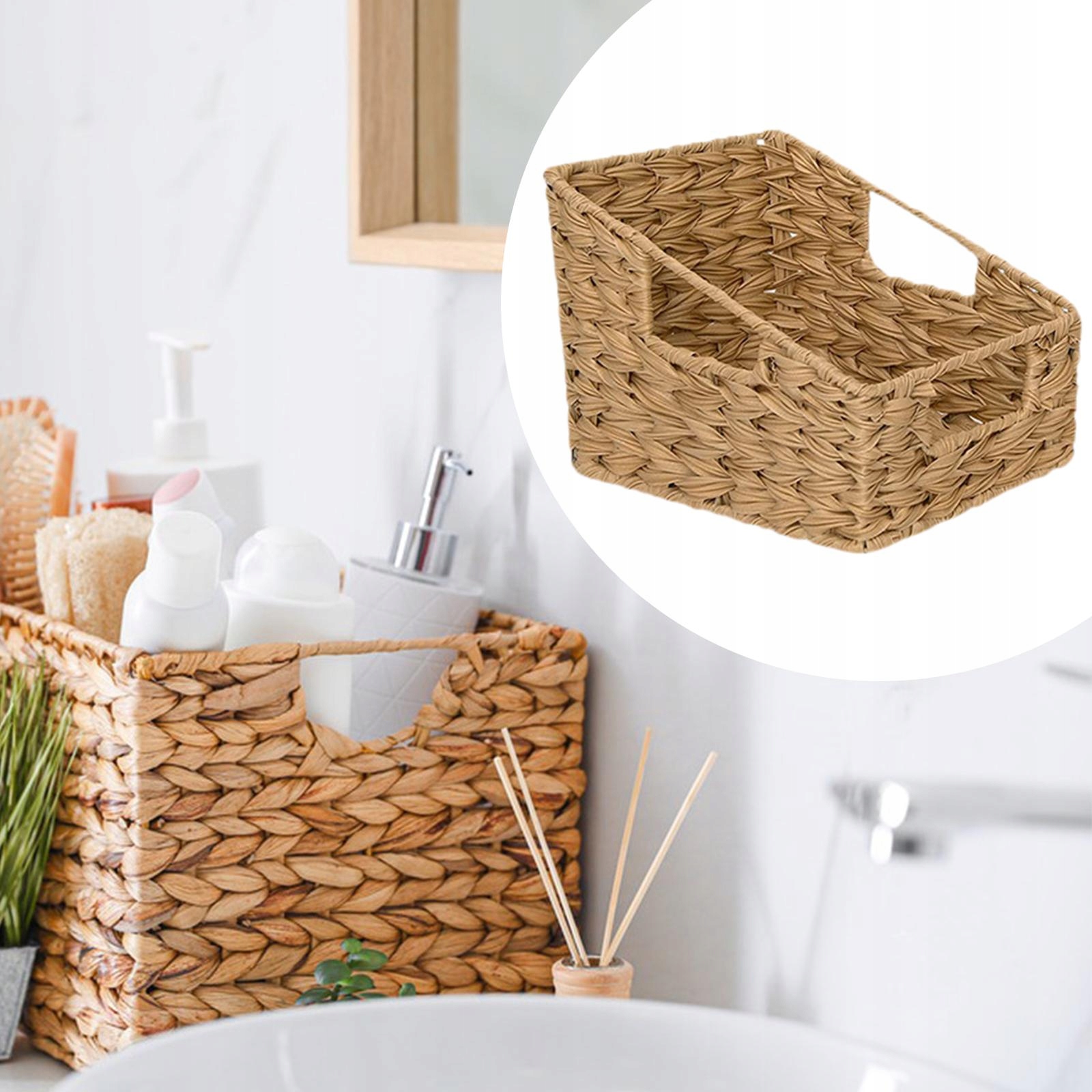 [Матеріал]: Зроблений з імітаційного ротанга, цей кошик для зберігання не тільки пропонує довговічність, але й додає декору вашого будинку завдяки його, але стильному вигляду. Не займаєши занадто багато місця на стільниці чи полиці.