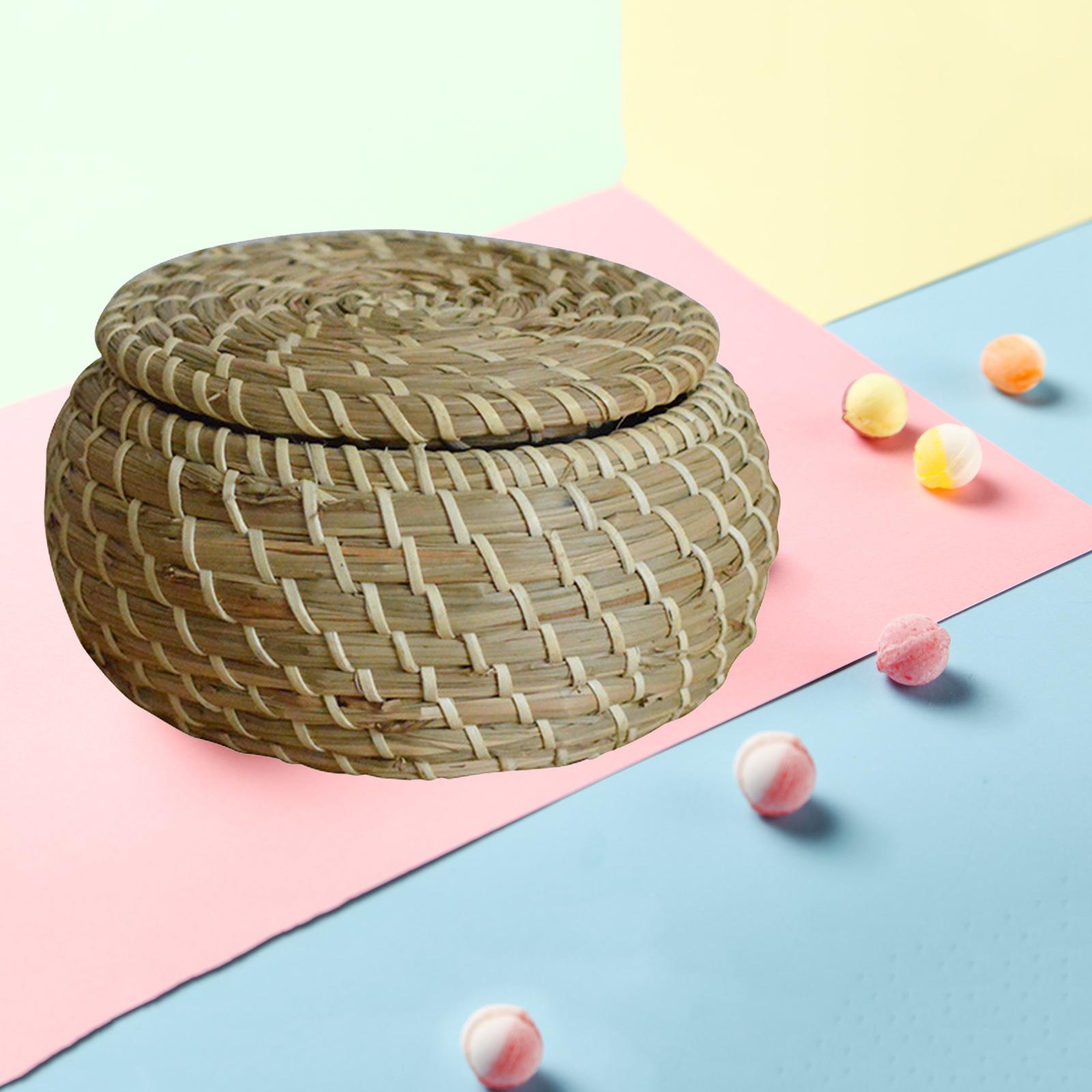 Плетені кошики для зберігання, ручка, декоративна кругла кришка для ванної кімнати, фрукти, їжа, маленька