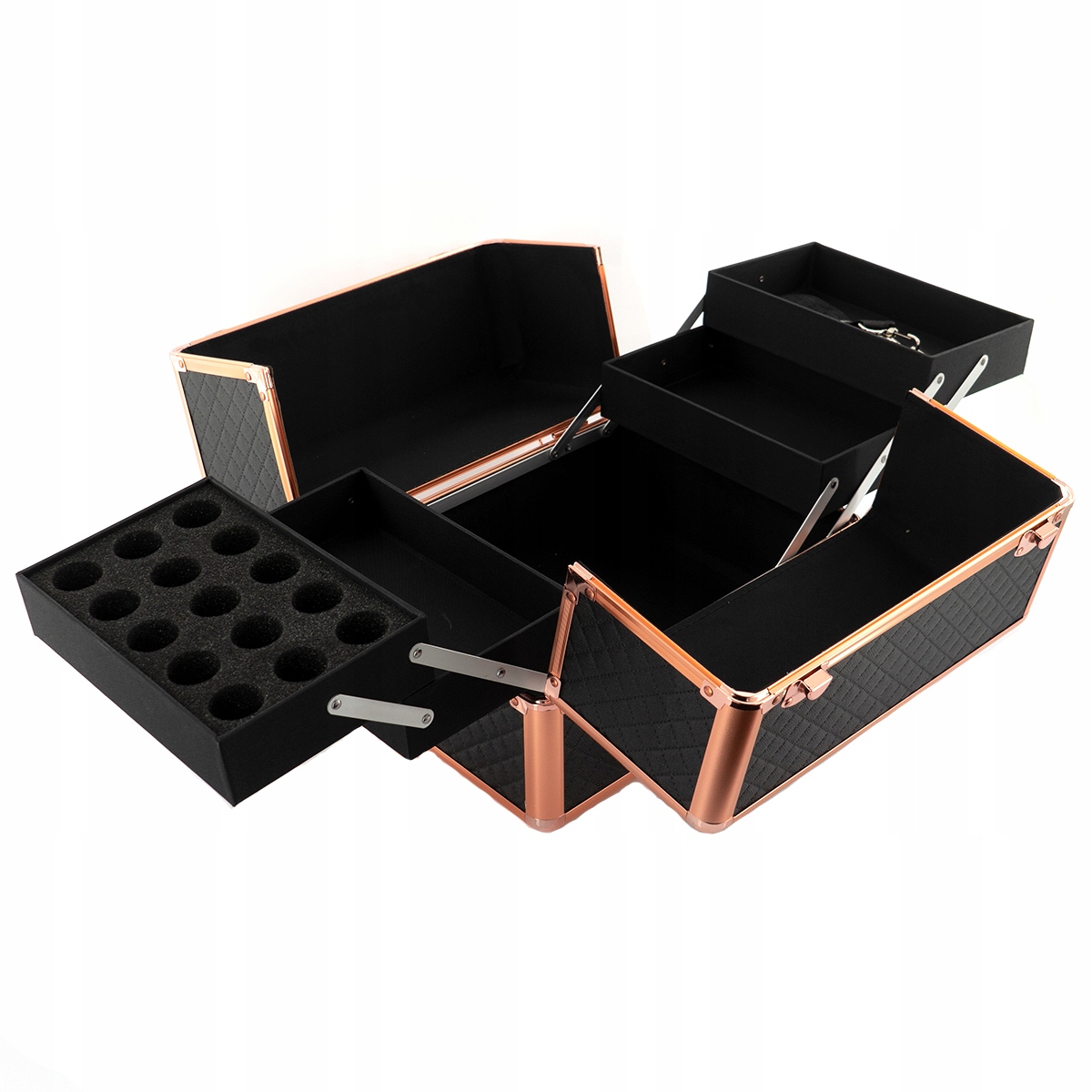 Функціональна та приваблива косметичка, ідеально підходить для нігтьових стилістів, косметологів, візажистів, які працюють у полі або для зберігання косметики вдома . Міцно виготовлений, складаний і оптимально підібраний розмір корпусу дозволяє легко розмістити всередині повнорозмірну УФ і LED лампу. Шафа відкривається з обох сторін і має висувні полиці та захист у вигляді двох замків з ключем.