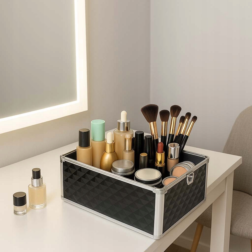 макіяжем, так і любителям макіяжу. У набір входить два ключа, які дозволяють закрити чохол, захистивши його вміст від небажаного використання. Завдяки ергономічній ручці кейс зручний і його легко