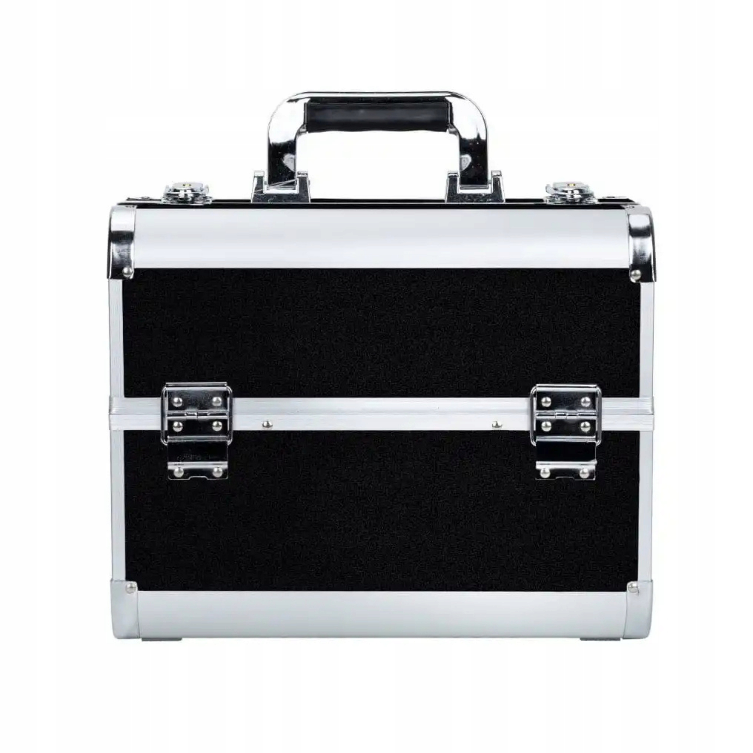 Ця чорна косметичка з алюмінієвими елементами — це поєднання стилю, довговічності та функціональності.