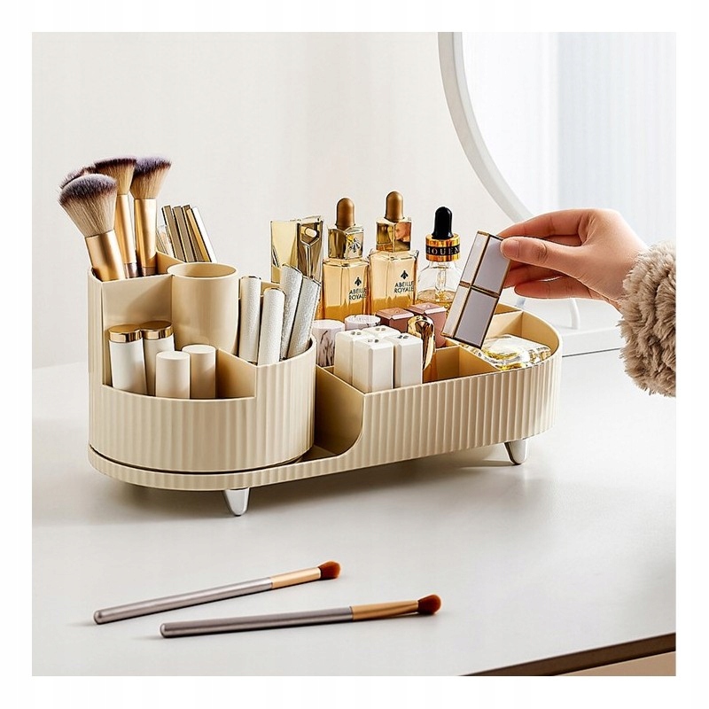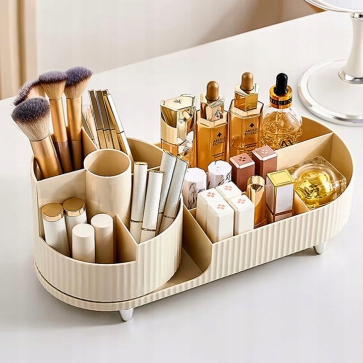 ➡️ Знайомтеся з практичним та елегантним поворотним органайзером, який змінить ваш простір. Цей стильний органайзер є ідеальним рішенням для зберігання пензлів, косметики, парфумів, прикрас і дрібних аксесуарів. Численні відділення різного розміру сприяють продуманому розташуванню всіх продуктів так що кожен знайде своє місце.