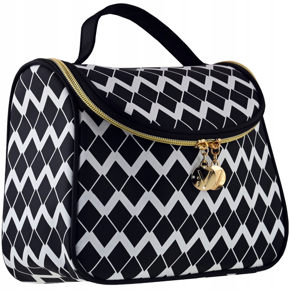 Кофр має овальний клапан і внутрішню кишеню, що полегшує розміщення косметики та аксесуарів. Закривається на блискавку золотого кольору. Виготовлений з високоякісної, гнучкої та міцної тканини, легко чиститься. Оснащений зручною ручкою для зручного транспортування. У ньому зручно зберігати найважливіші косметичні засоби та аксесуари. Ідеально підходить як для подорожей, так і для щоденного використання вдома.