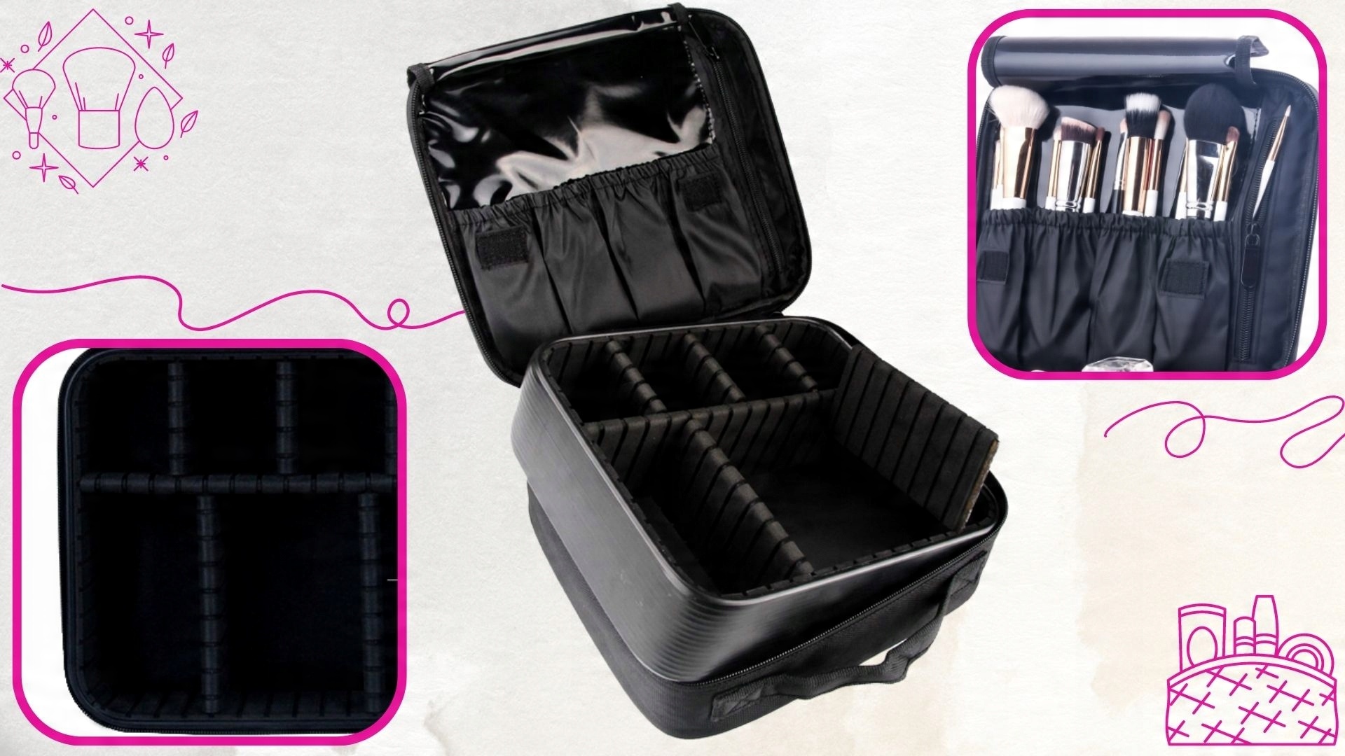 - ✅Завдяки регульованим відділенням і численним кишеням косметичка також ідеально підходить для роботи професійних косметологів і візажистів.