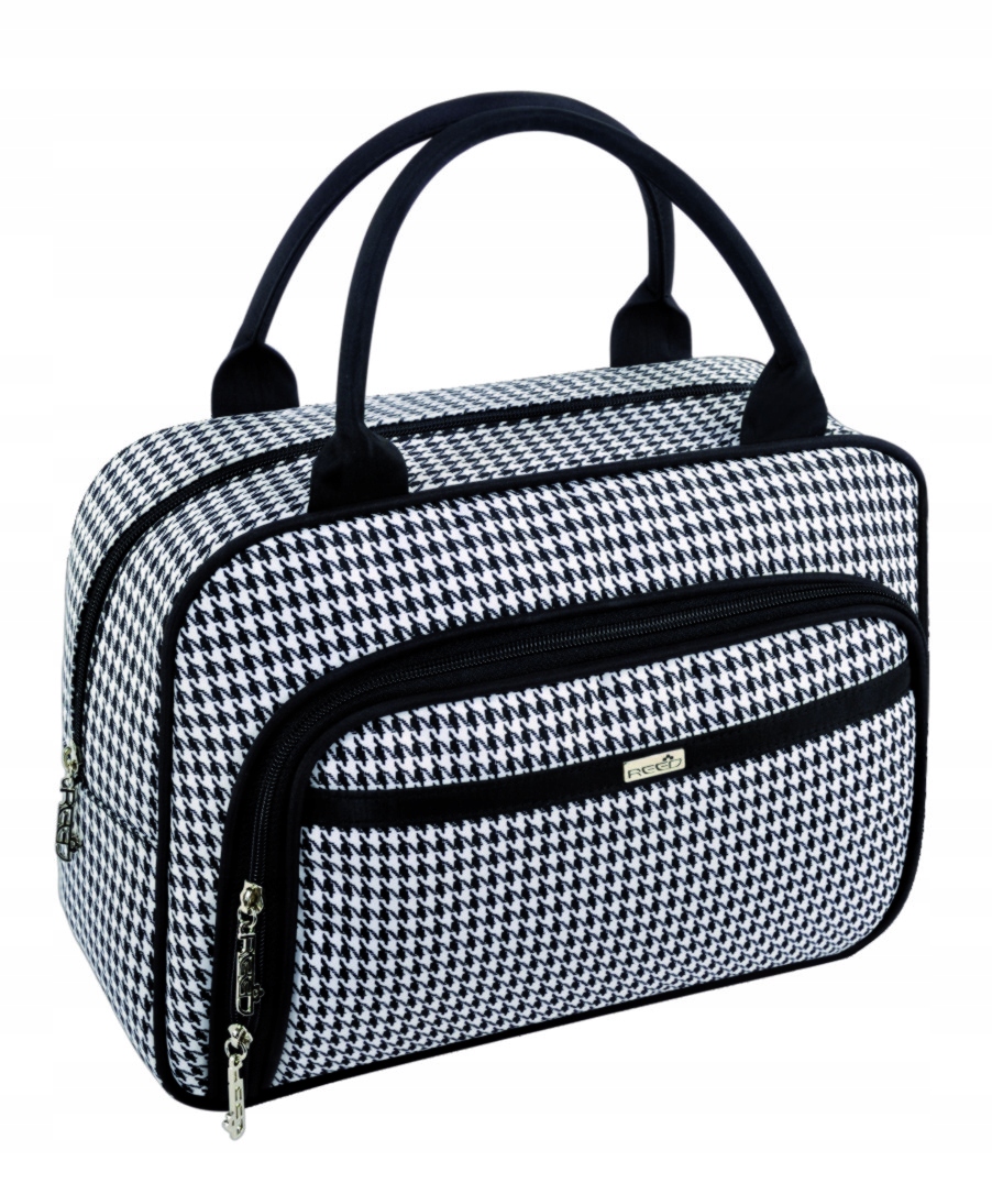 Нова, дуже елегантна серія косметичок з красивого матеріалу з класичним візерунком у вигляді гусячих лапок.