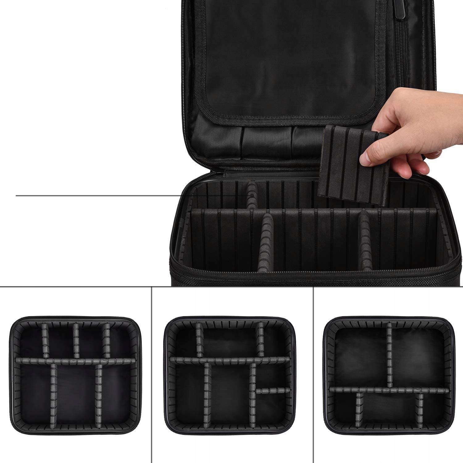 Надзвичайно практична дорожня косметичка. Оснащена великою кількістю відділень різного розміру та призначення, додатковою перевагою є можливість їх переставляти.