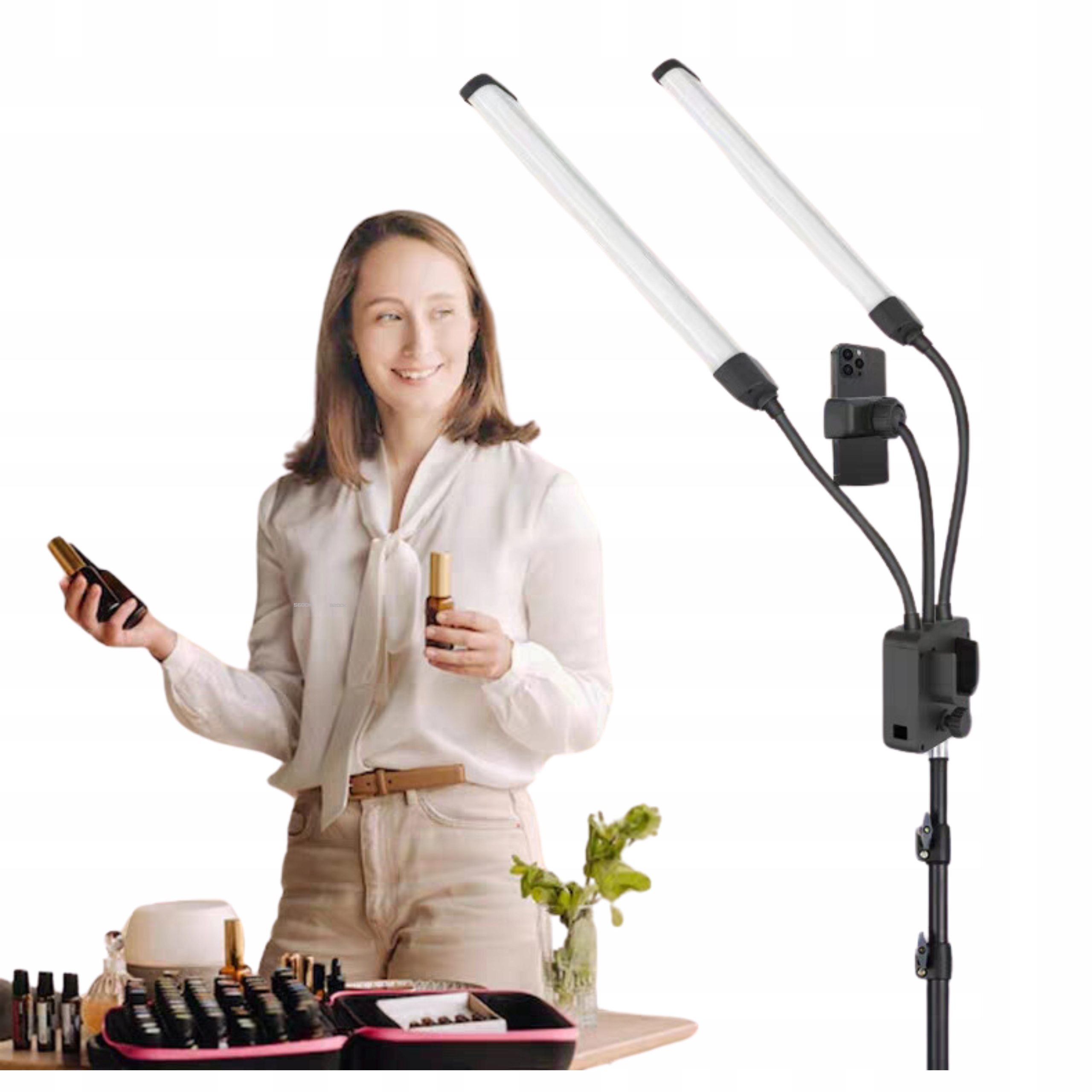 У набір входить світлодіодна лампа з регулюванням яскравості та колірної температури, стійкий телескопічний штатив, універсальне кріплення для смартфона та практичний шнур живлення. Готовий комплект, який надасть вашій роботі нової якості.