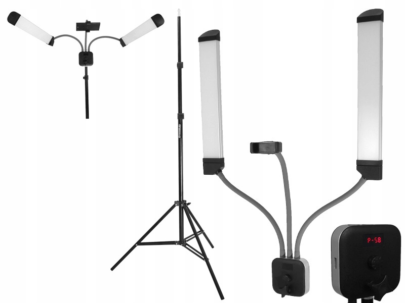 - гнучкі кронштейни для ламп і тримач для смартфона,
