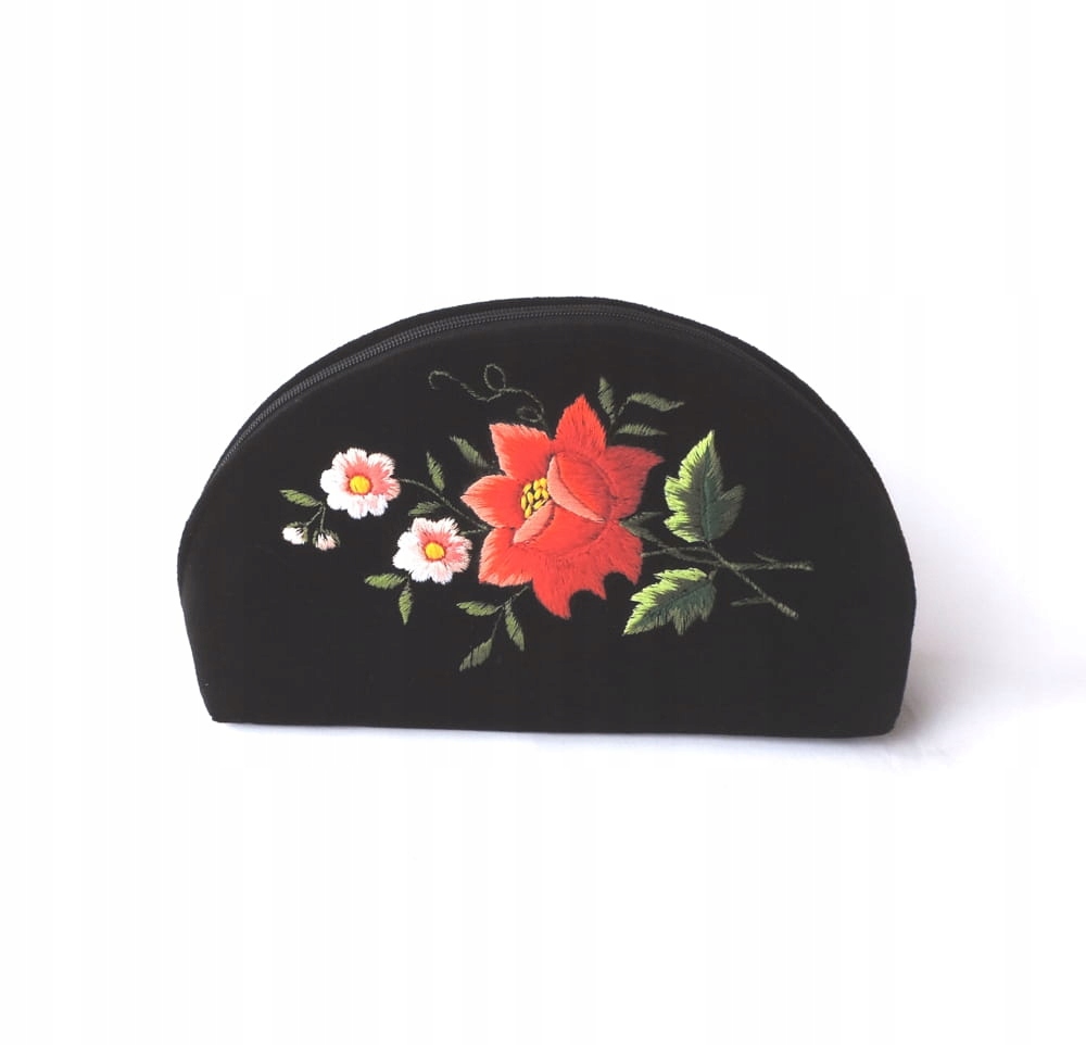 Косметичка з чорного оксамиту, прикрашена вишивкою Łowicz.