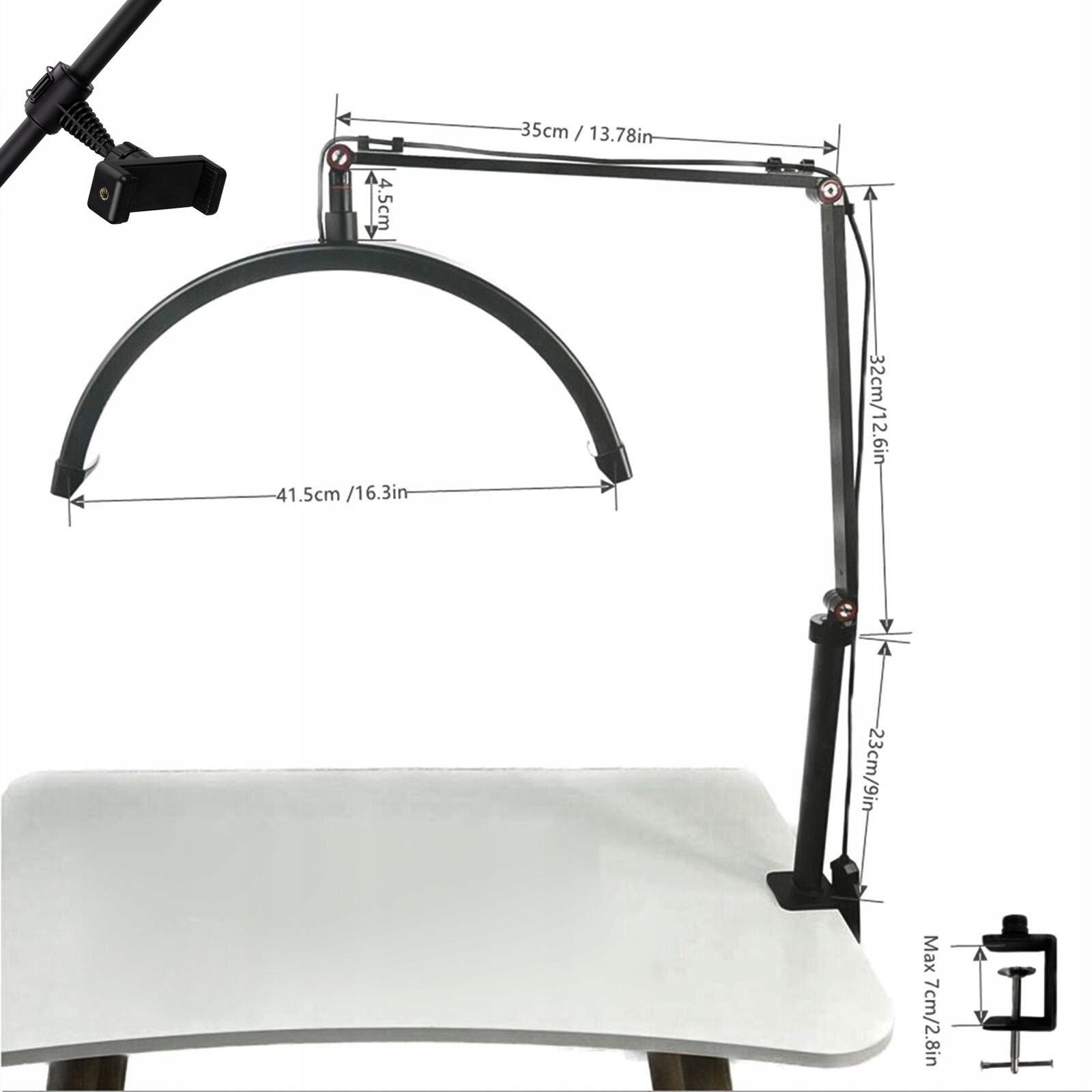 С-подібна основа підставки для настільної лампи з максимальною відстанню затиску 7 см сумісна з більшістю столів, легко збирається та заощаджує багато вільного місця.