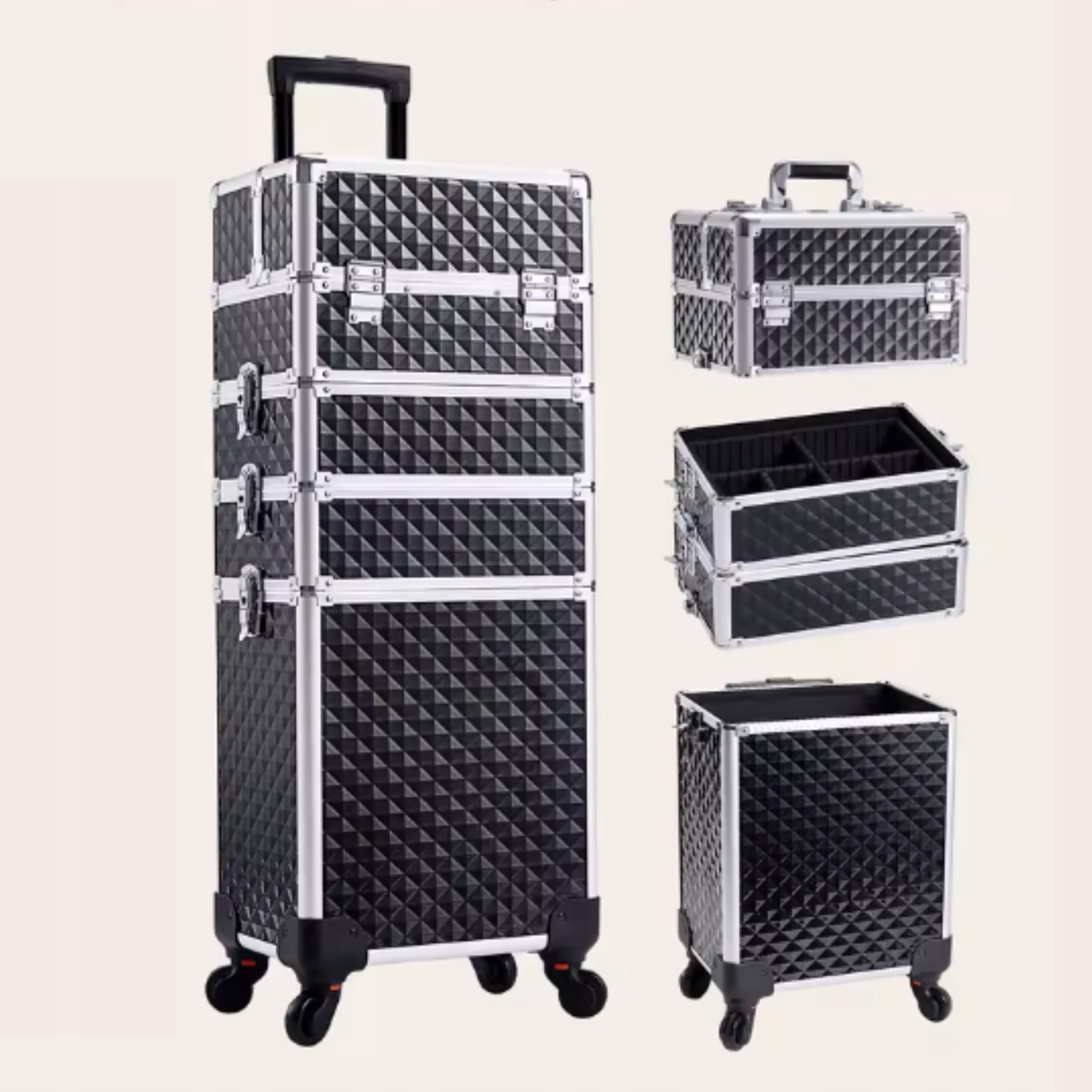 - ✔ Висока потужність - призначена для розміщення фенів, бігудей, ультрафіолетових світильників, косметики, аксесуарів для нігтів та інших великих предметів . 4 Можливість використовувати як один багажник, валізу з відсіками або повноцінним багажником на колесах .