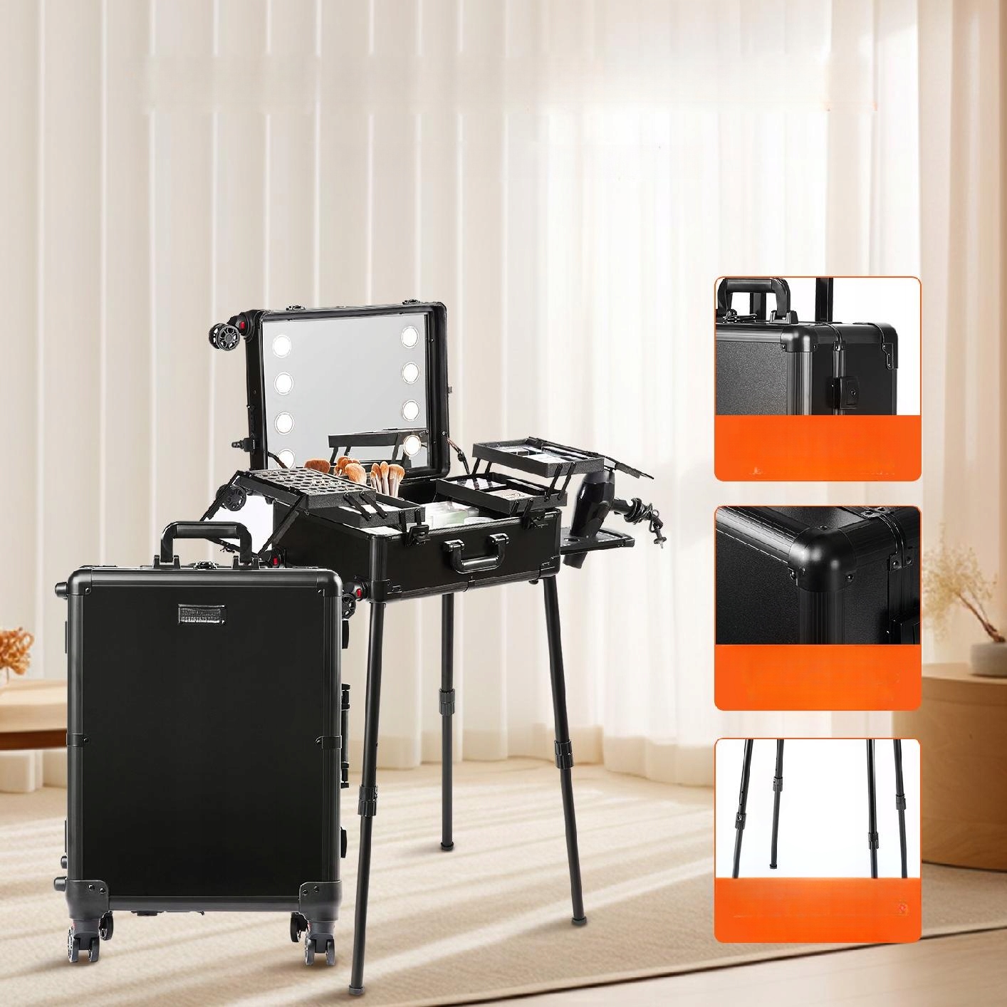 Портативна станція для макіяжу з великим дзеркалом, ідеальна для використання в різних сценаріях, наприклад у студіях візажу, перукарні та на спеціальних заходах.