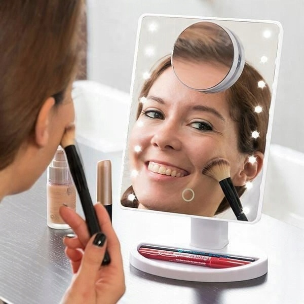 Сучасне косметичне дзеркало зі світлодіодним підсвічуванням є неодмінним елементом кожної косметики. Дзеркало – це практична і корисна річу кожному домі чи салоні краси.Завдяки ньому кожна деталь стає помітною, а макіяж завжди буде ідеальним!