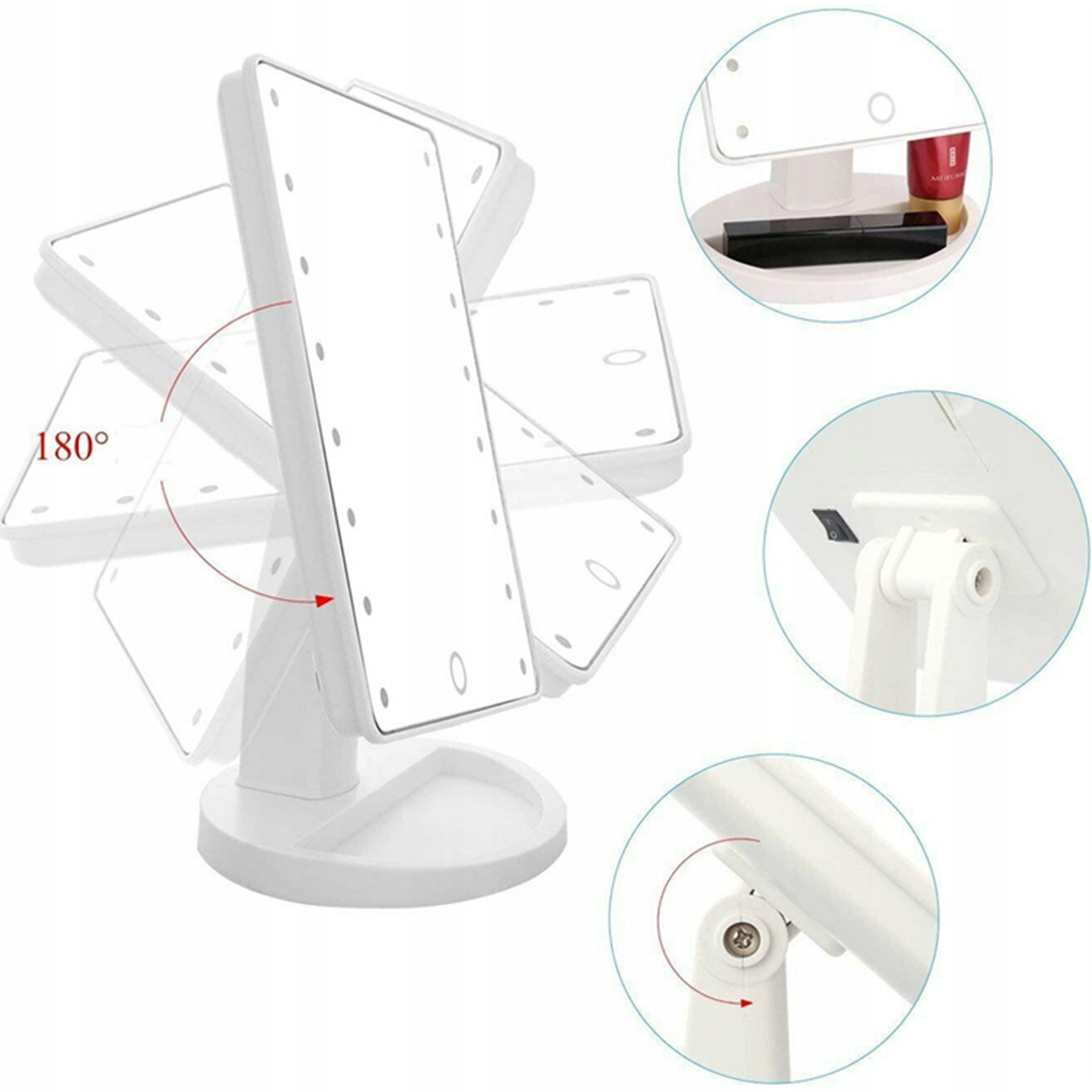 Дзеркало зі світлодіодним підсвічуванням живиться від батарейок - ви можете розмістити його де завгодно, не турбуючись про джерело живлення. Косметичне дзеркало з підсвічуванням має цілих 22 світлодіоди, завдяки чому кожна частина Вашого обличчя, шиї та декольте буде ідеально освітлена. Діоди розміщені по краях дзеркальної поверхні, що забезпечує рівномірне освітлення з усіх боків. Кут нахилу світлодіодного дзеркала з підсвічуванням можна регулювати в межах 180° - ви можете легко налаштувати положення дзеркальної поверхні відповідно до власних уподобань і поточних потреб.