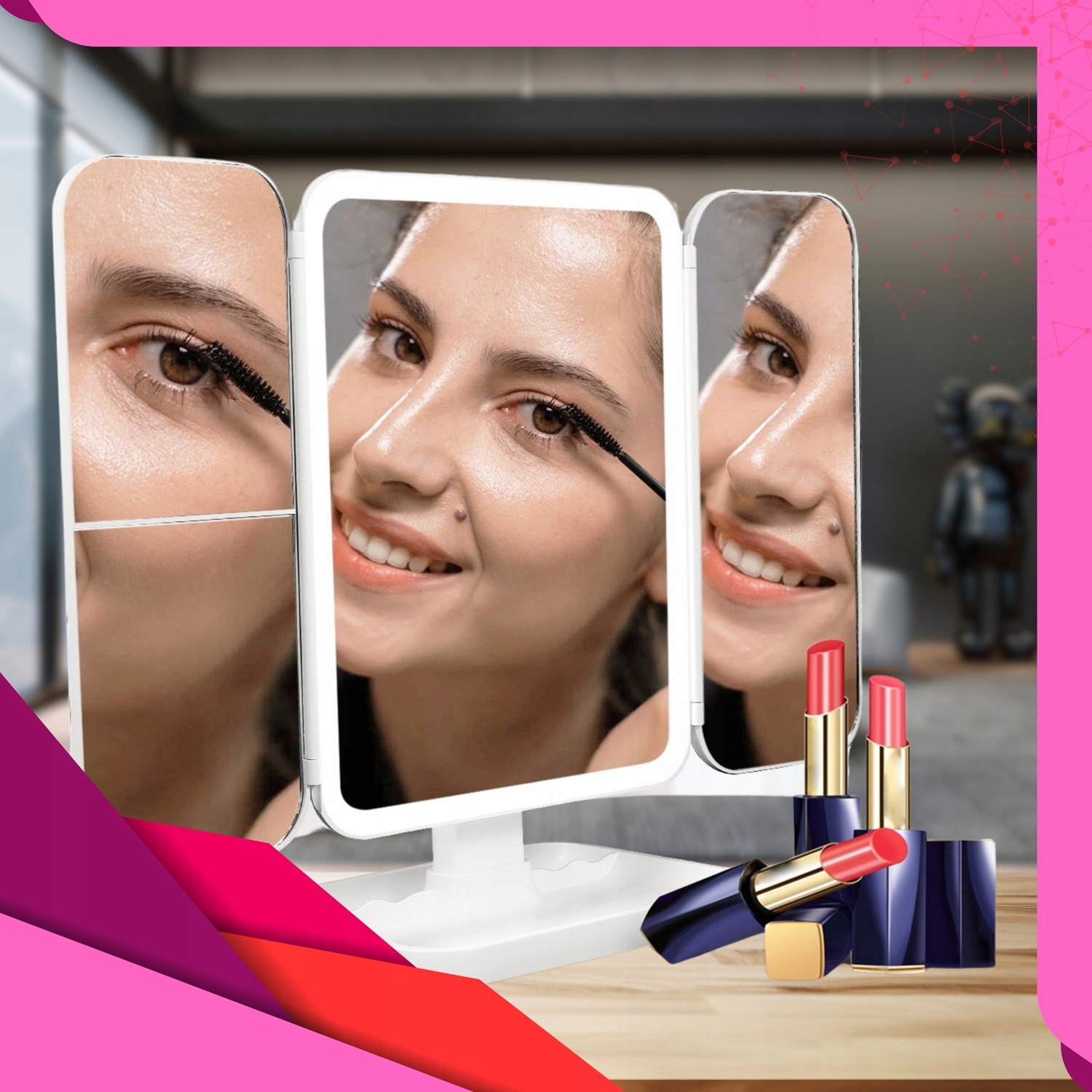 КОСМЕТИЧНЕ ДЗЕРКАЛО ДЛЯ МАКІЯЖУ З ПІДСВІЧУВАННЯМ СВІТЛОДІОДОМ, СКЛАДНЕ