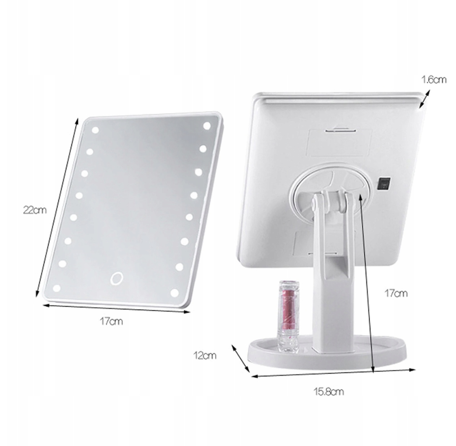 Косметичне дзеркало зі збільшенням оснащене аж 16 світлодіодними діодами зовні. Світлодіоди активуються дотиком - просто клацніть будь-де на дзеркалі, щоб активувати їх і освітлити робоче місце, наприклад, під час нанесення макіяжу.
