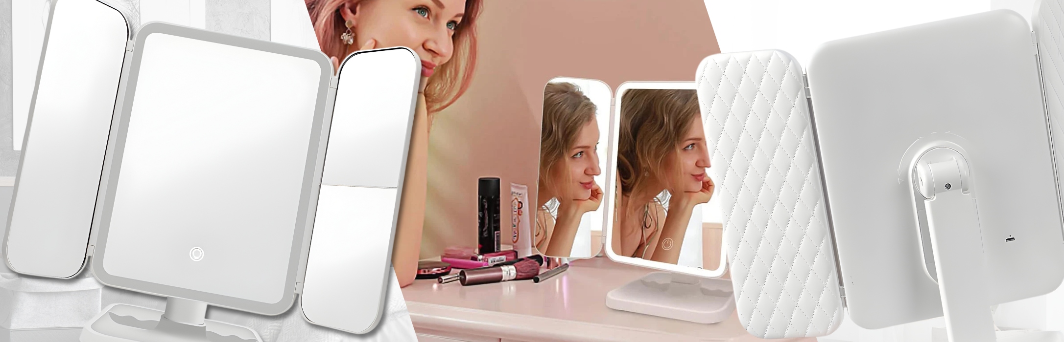Завдяки конструкції, що складається, дзеркало займає мінімум місця та легко поміщається в сумочку чи валізу, тому ви можете взяти його куди завгодно.