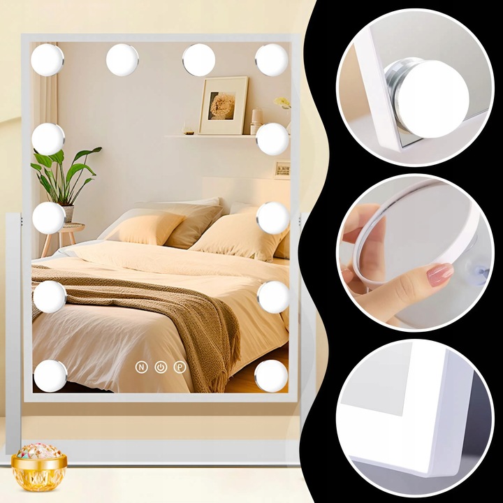 КОСМЕТИЧНЕ ДЗЕРКАЛО ГОЛЛІВУД СТОЯЧЕ ДЗЕРКАЛО ДЛЯ МАКІЯЖУ LED 12 ЛАМПОЧОК