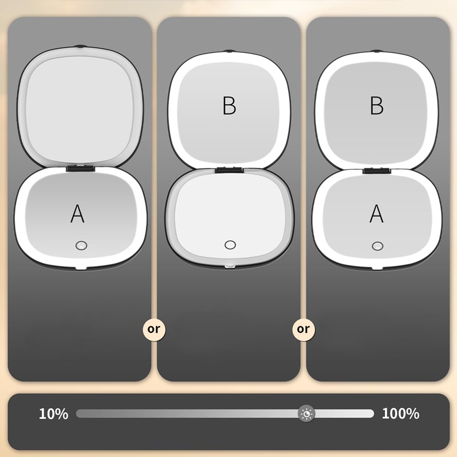 🪞【3 режими освітлення та регульована яскравість】 Наше маленьке портативне дзеркало має три різні режими освітлення: біле світло, тепле світло і денне світло. Одним натисканням кнопки ви можете вибрати світло, яке найкраще пасуватиме до вашого макіяжу, будь то для роботи, вечірньої чи денної вечірки. Утримуйте кнопку, щоб відрегулювати рівень яскравості на свій смак.